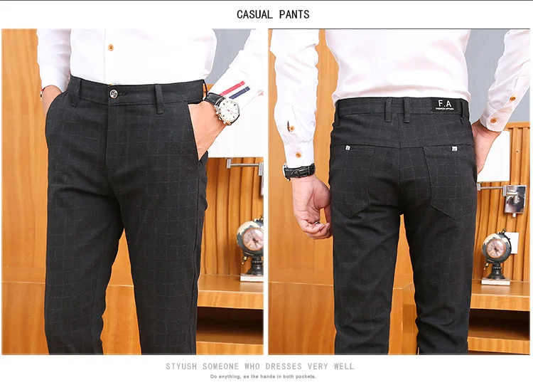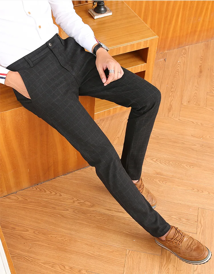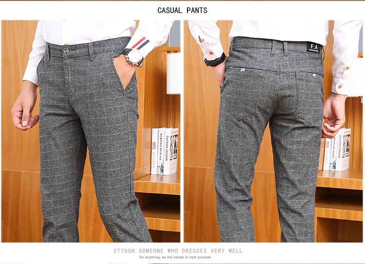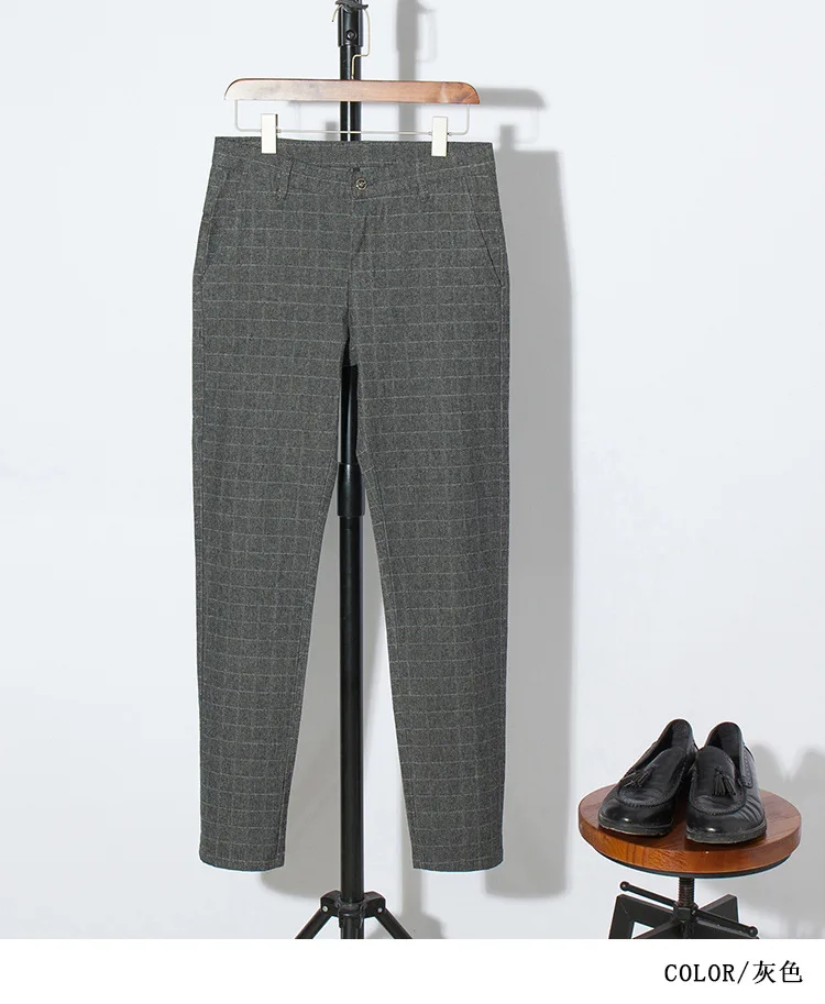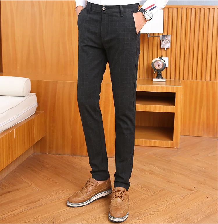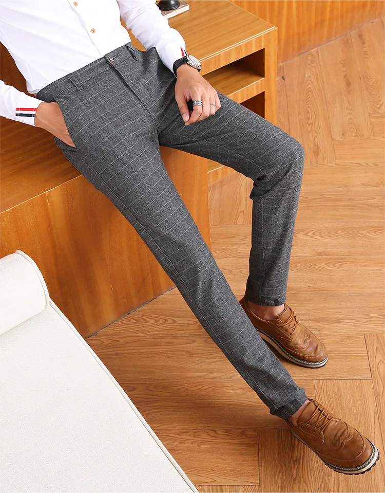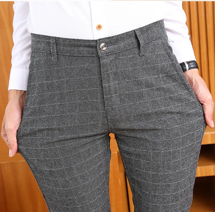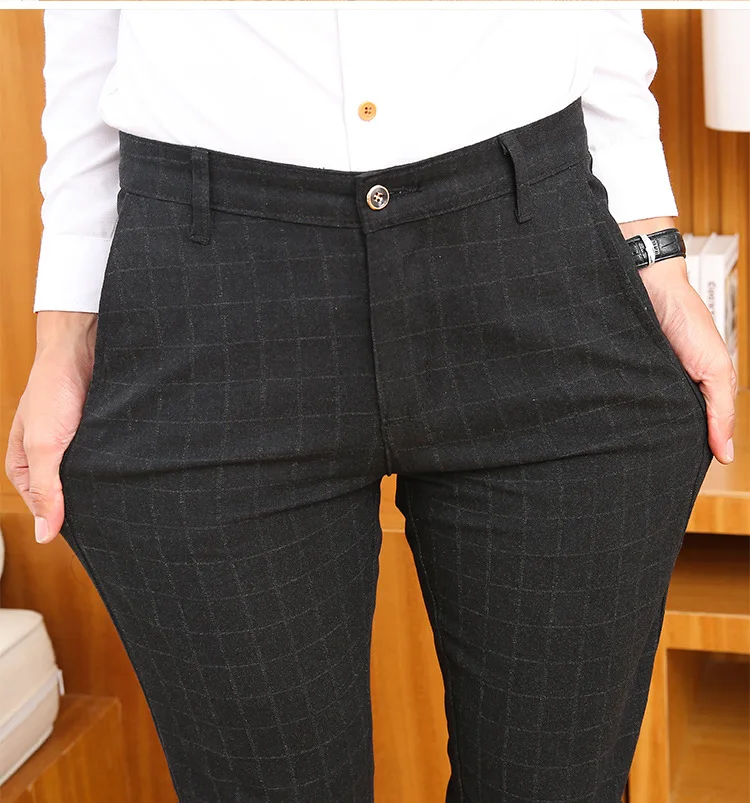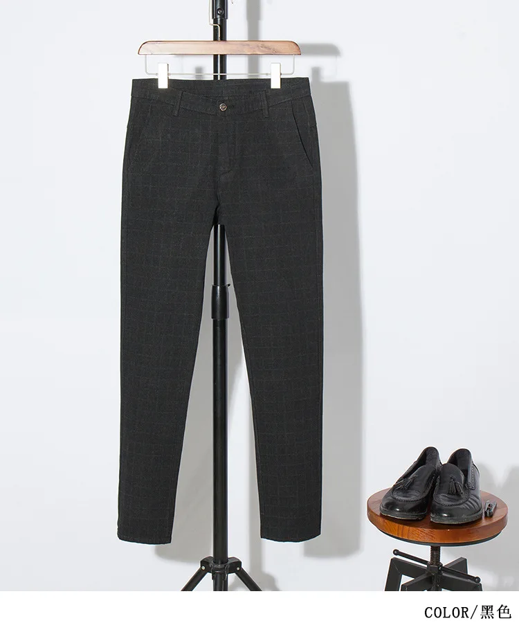 Icpans Men Suit Pants Length Black Gray Business Plaid Trousers Men Formal Chinos Office Pants Male Trousers Slim Plus SIze 40