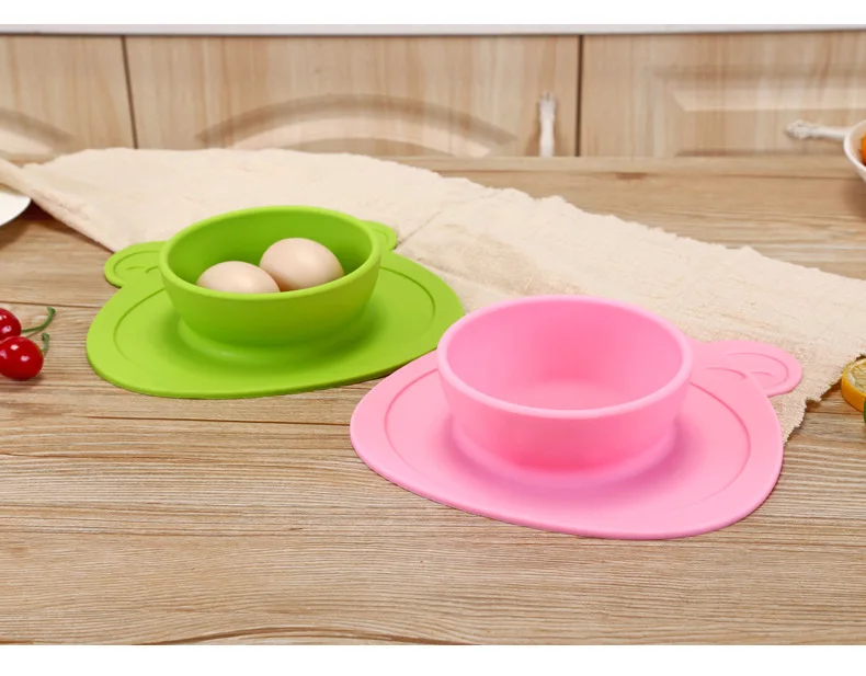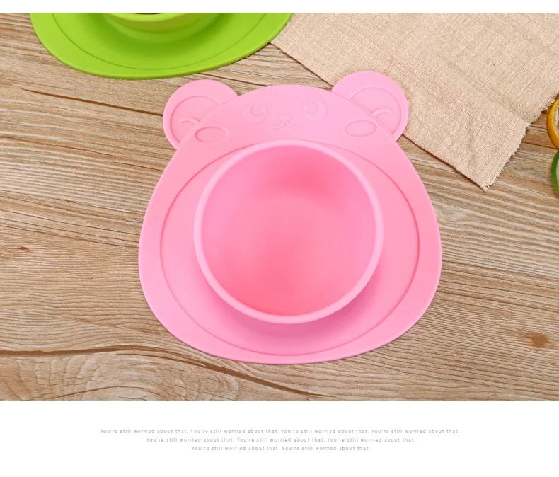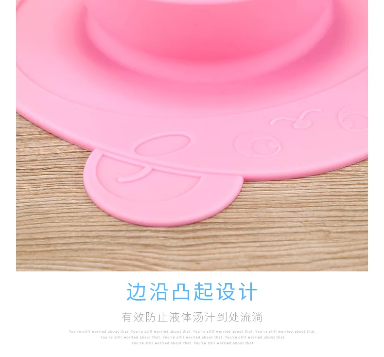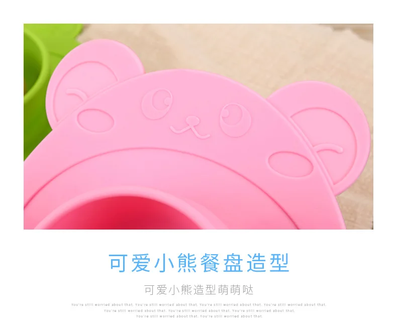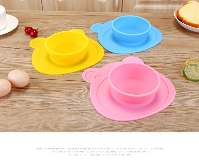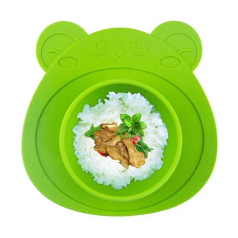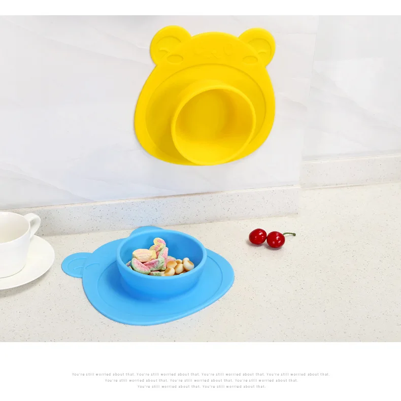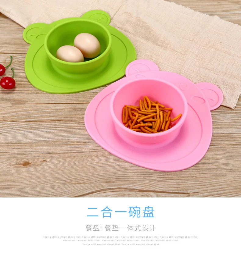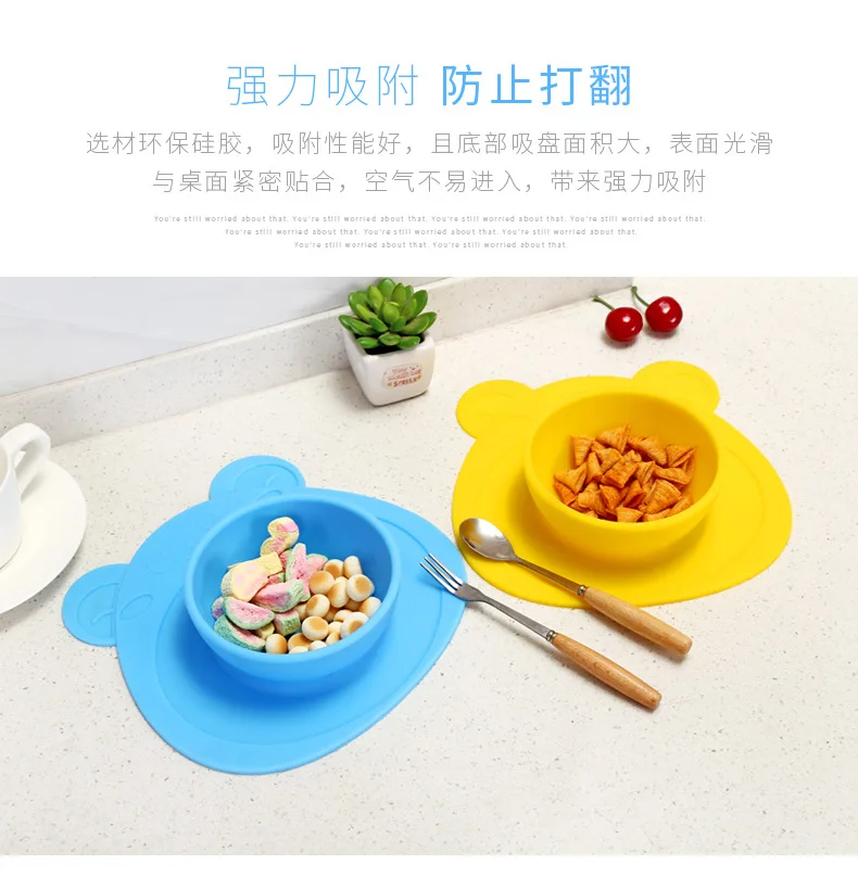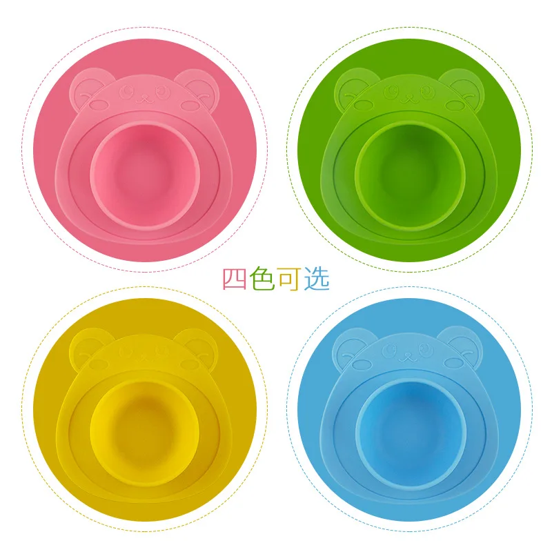 2. One-piece bear silicone children’s plate The bottom of the baby silicone children’s meal bowl is connected with a glossy placemat design, which makes the plate very good for the adsorption table and not easy to fall over.