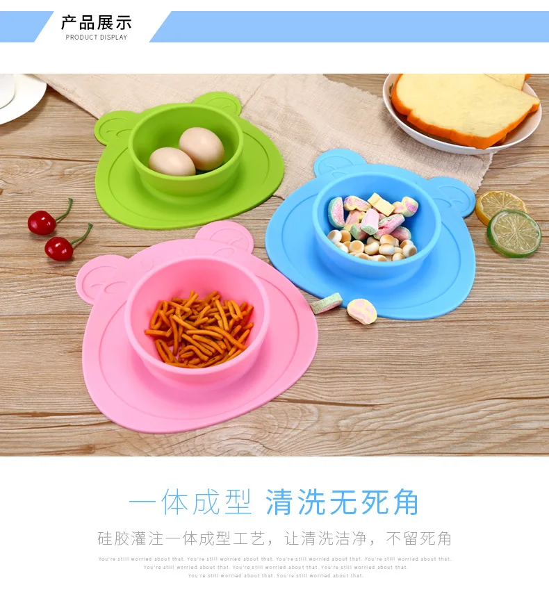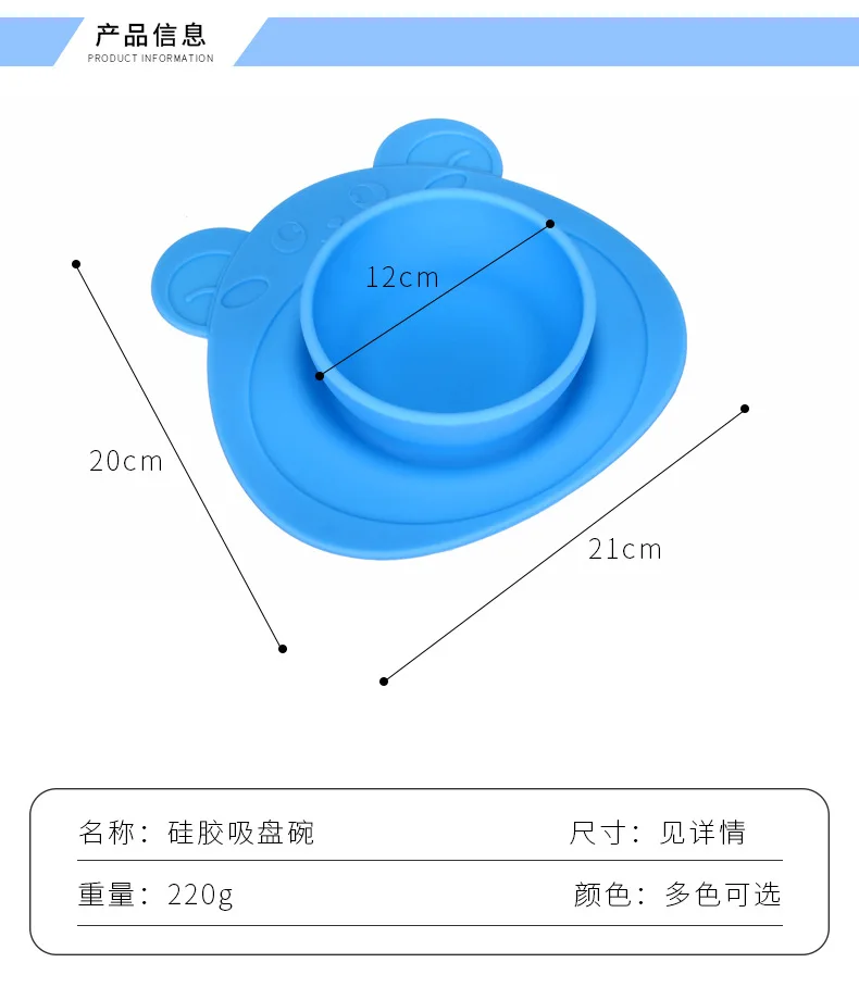1. Integral bear silicone children’s plate Infant silicone children’s bowl bowl food grade environmentally friendly silicone manufacturing, non-toxic and tasteless environmental health.