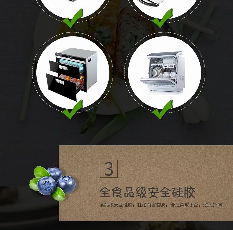 Both can be used and have a long service life. Prevents stains and is easy to carry. The bib groove is designed to take up food residue; food grade silicone can be used in dishwashers.