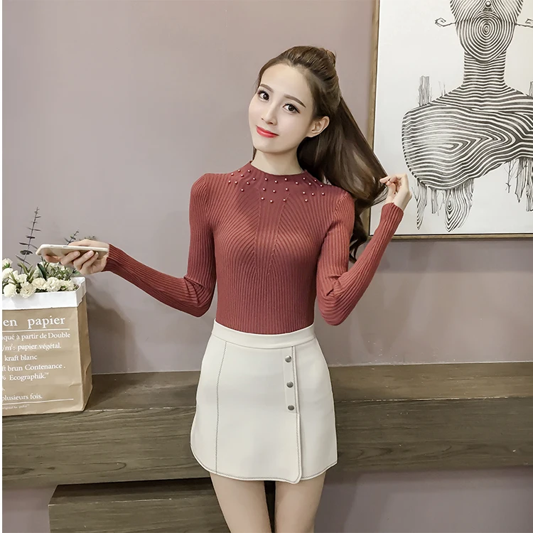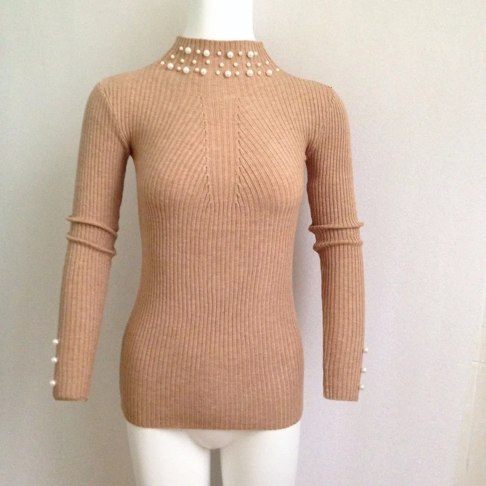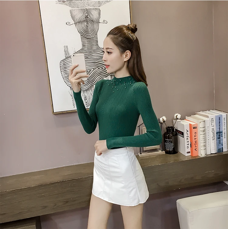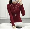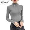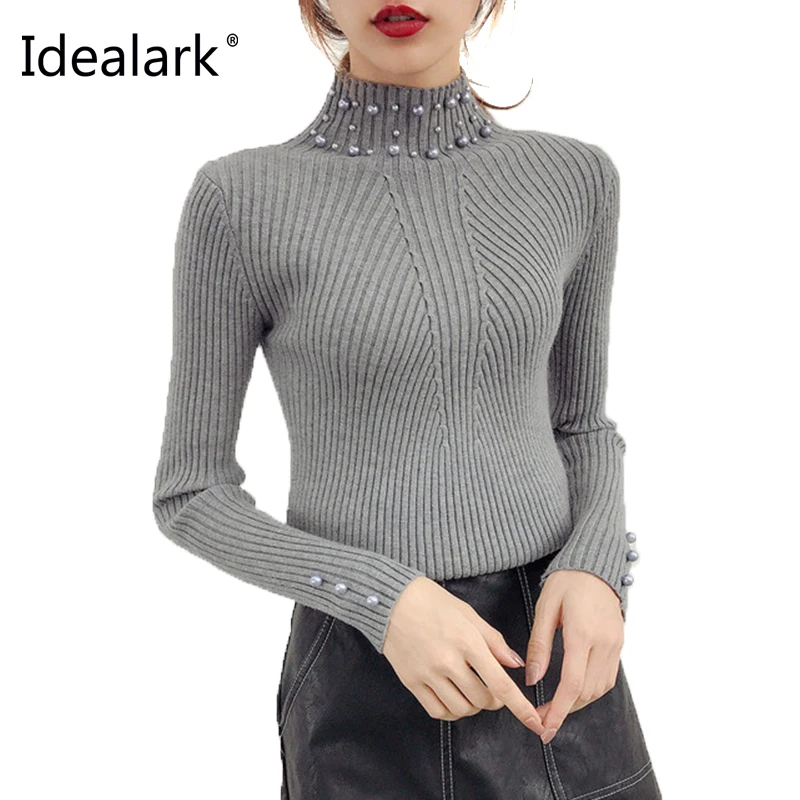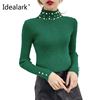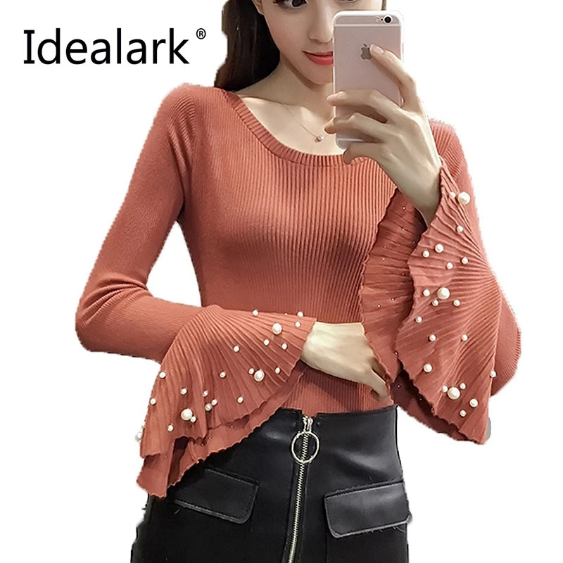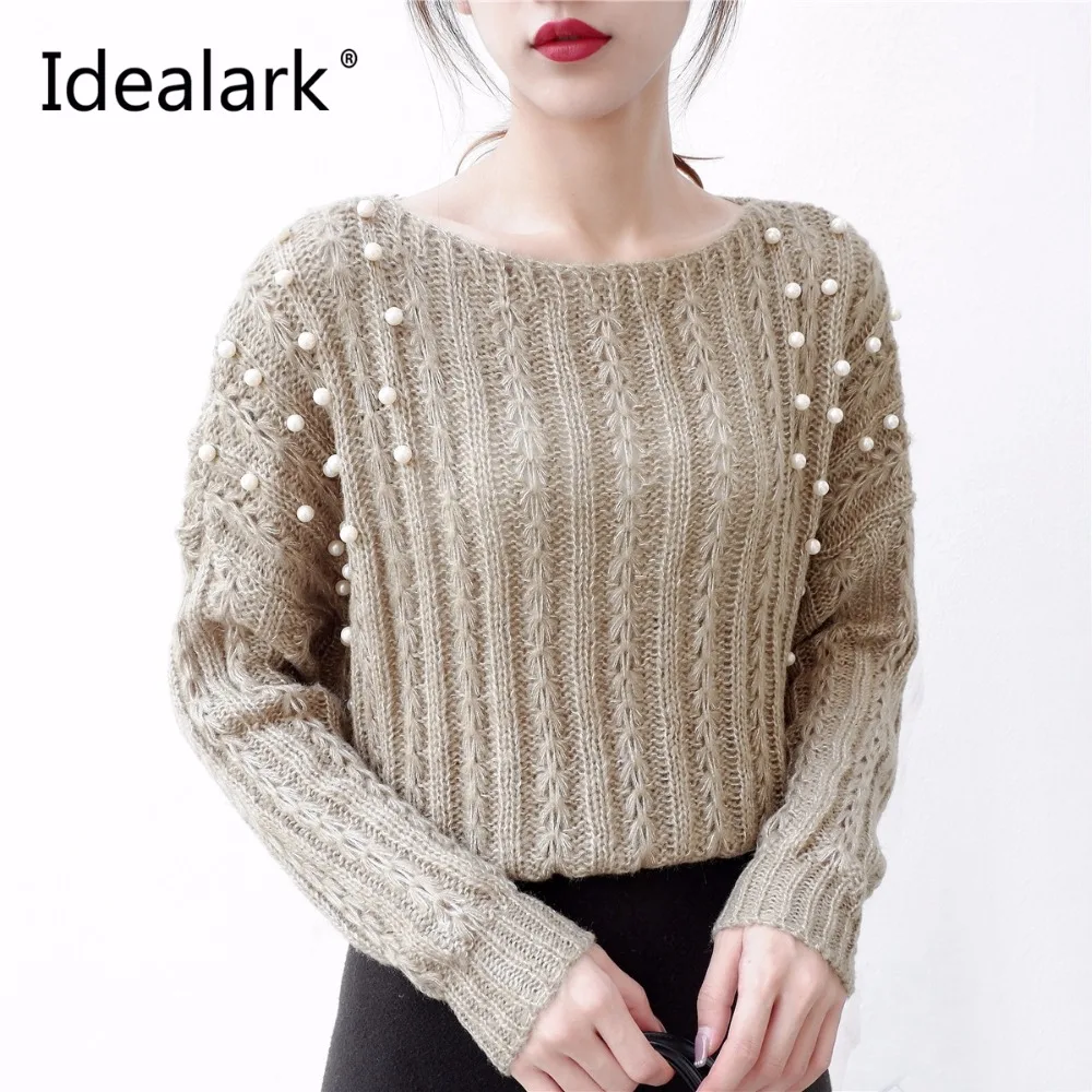 Idealark 2018 Pearl Beaded Pure Color batwing Sleeve Loose round Neck Long Sleeve Cute Women knit Sweaters and Pullovers WC0665