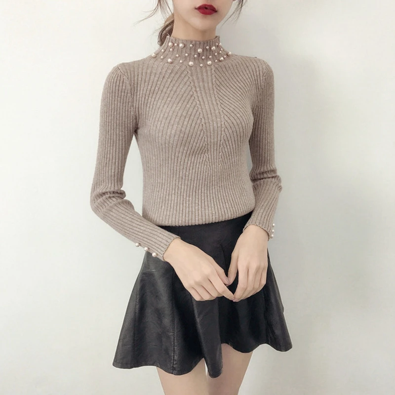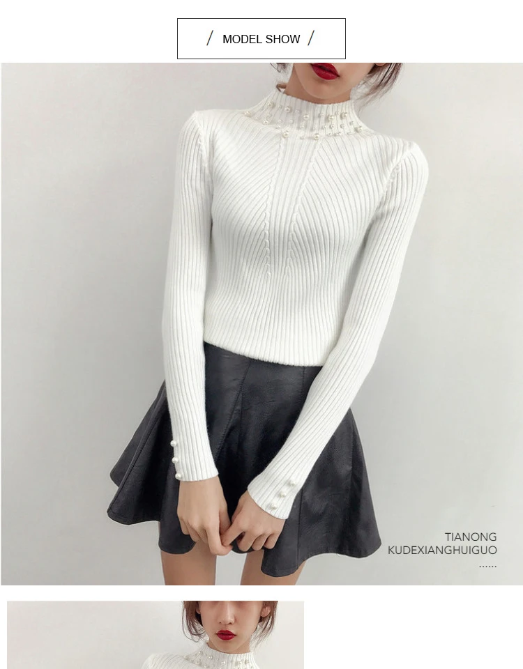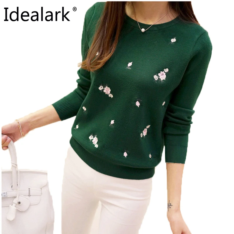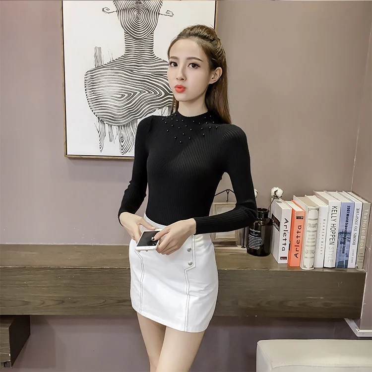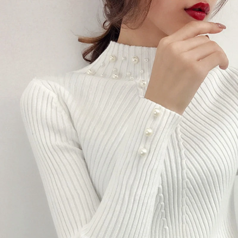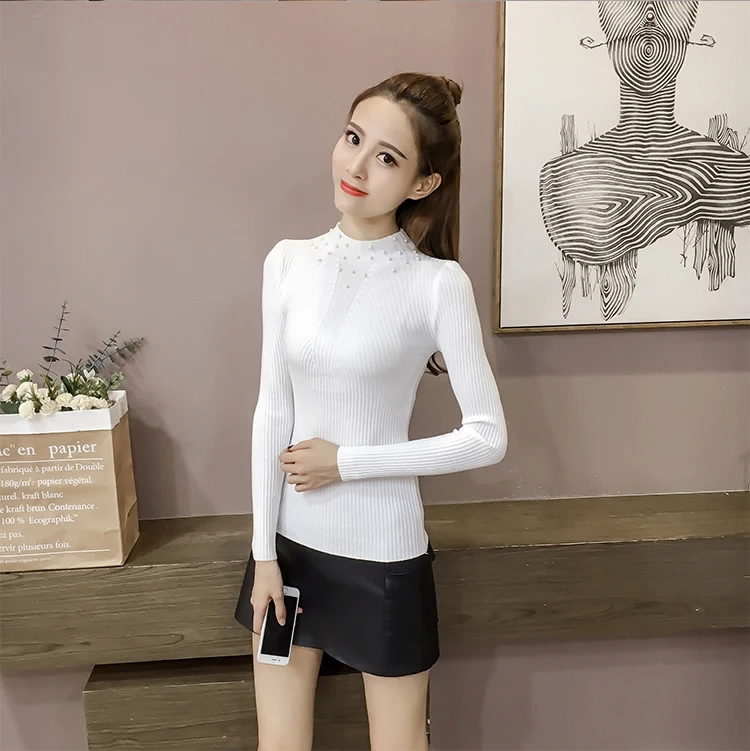 Idealark 2018 Pearl Beaded Pure Color batwing Sleeve Loose round Neck Long Sleeve Cute Women knit Sweaters and Pullovers WC0665