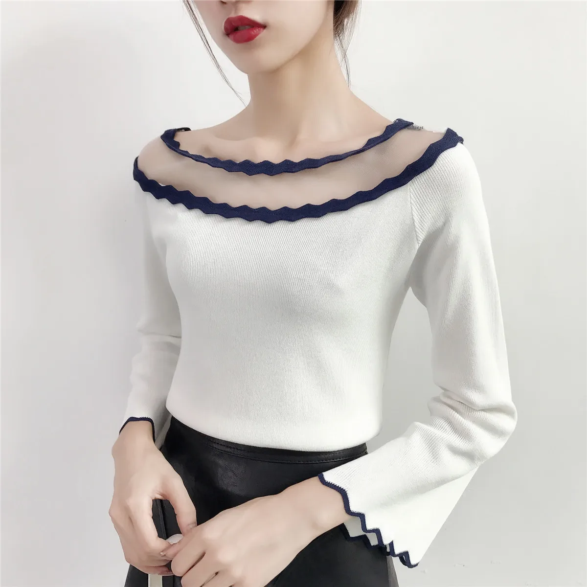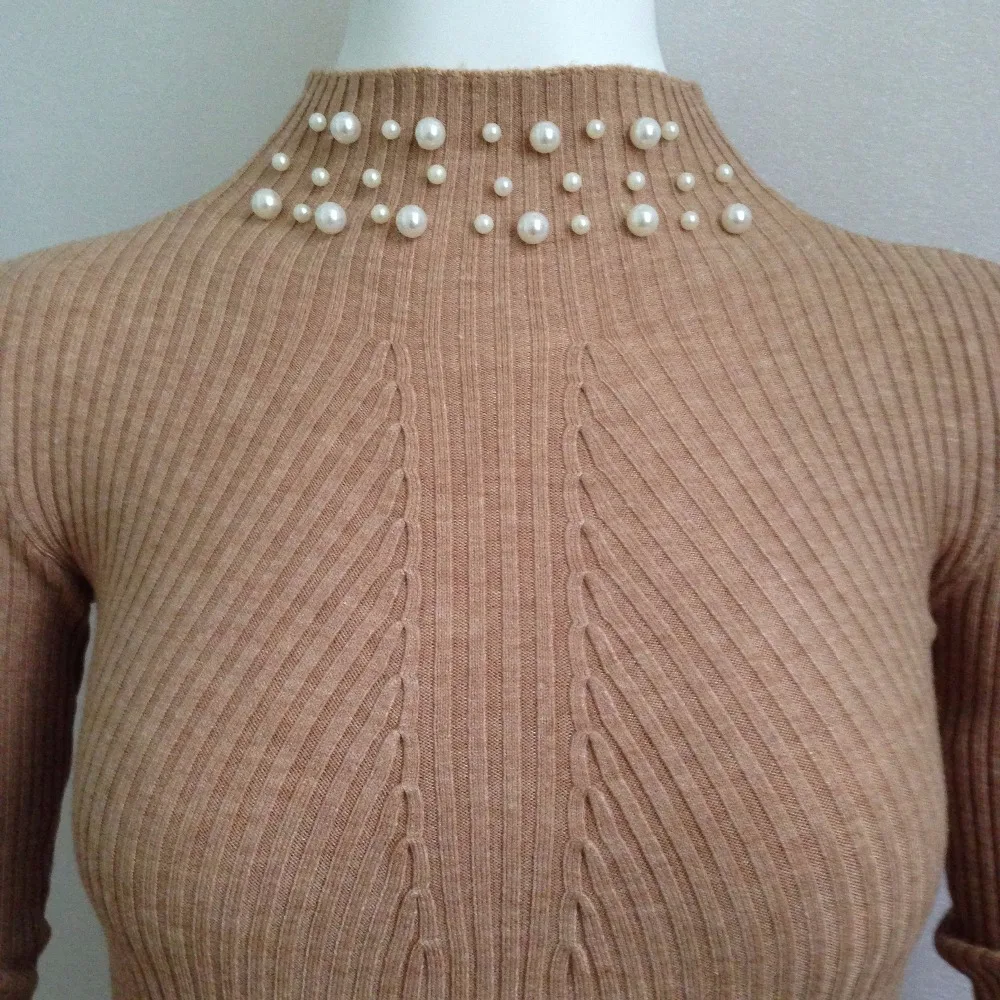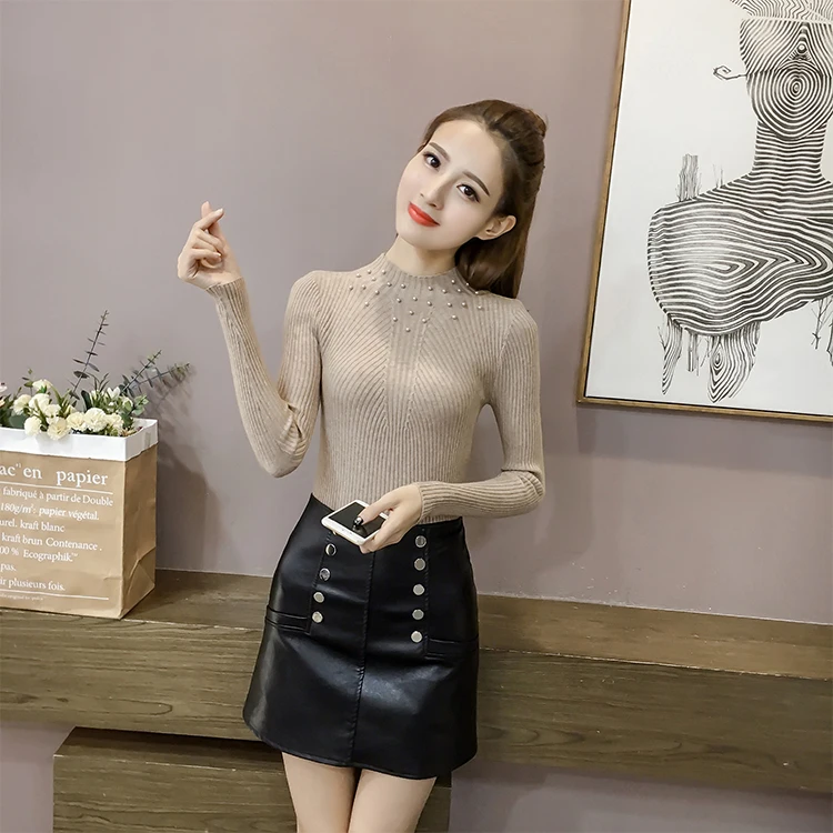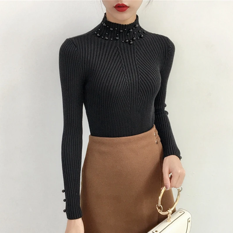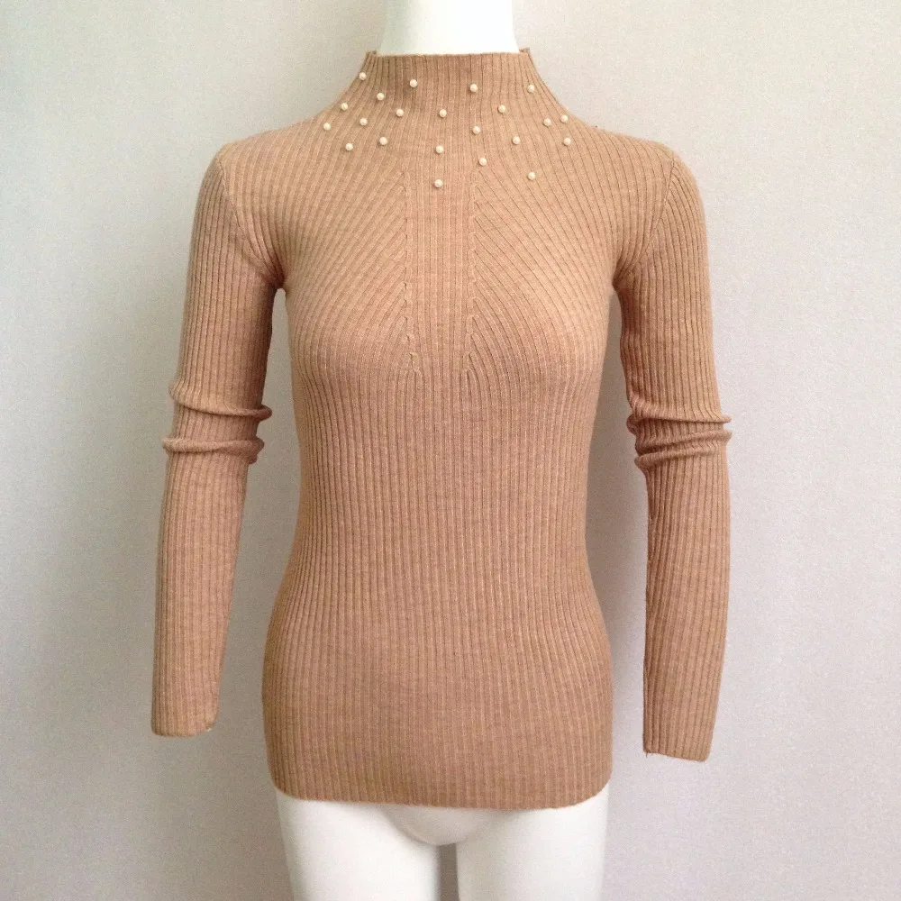 Idealark 2018 Pearl Beaded Pure Color batwing Sleeve Loose round Neck Long Sleeve Cute Women knit Sweaters and Pullovers WC0665