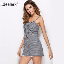 Idealark Sexy plaid jumpsuit romper Women strap backless overalls Causal bandage summer beach lace playsuit WC0631