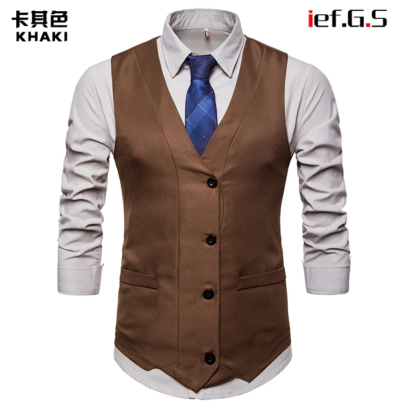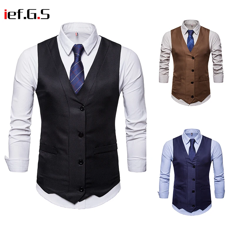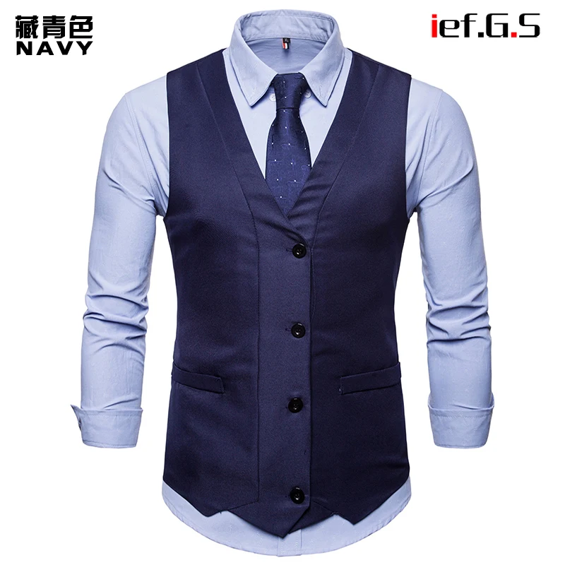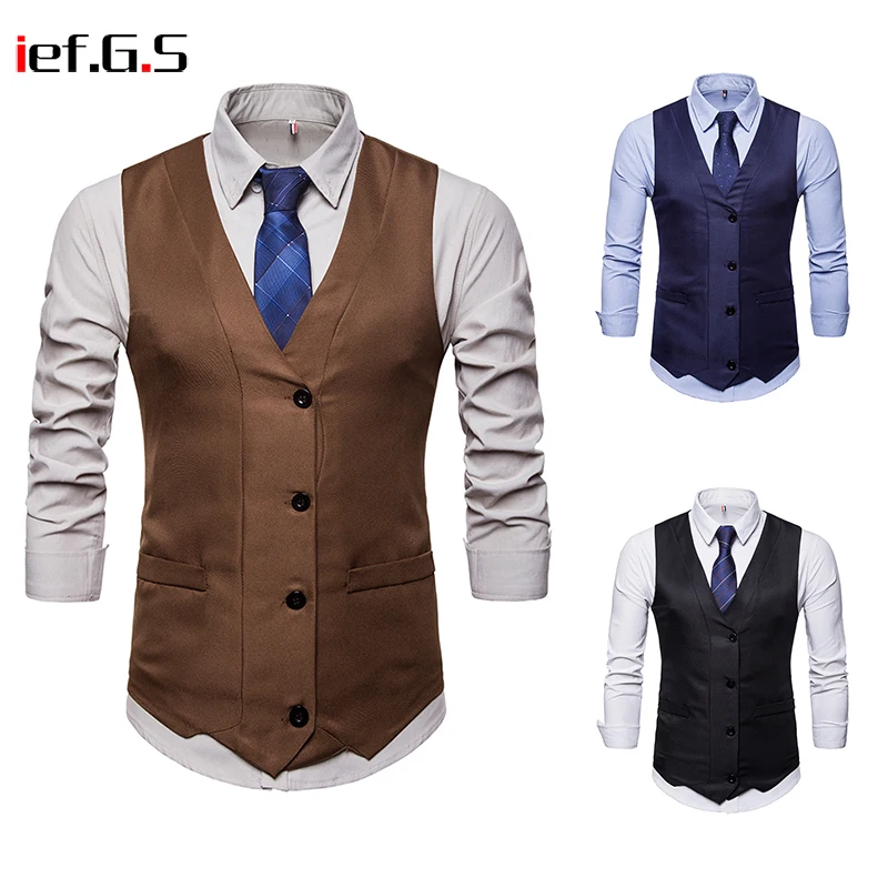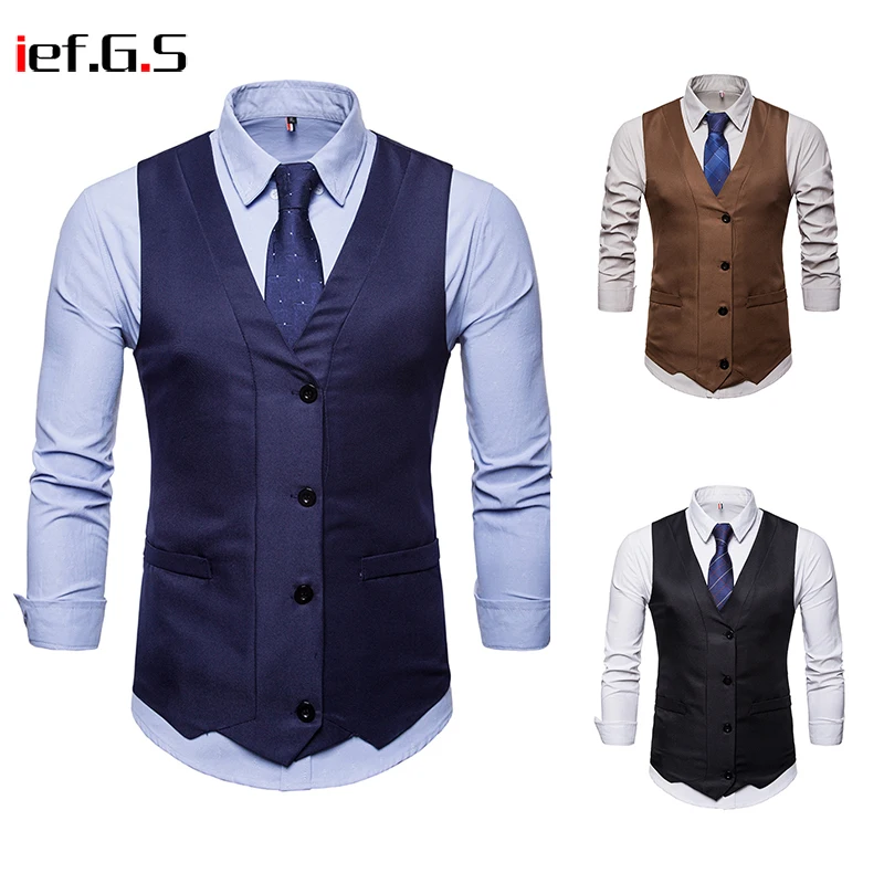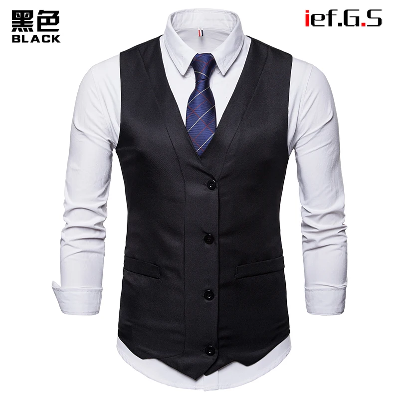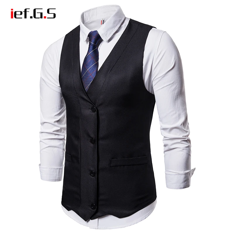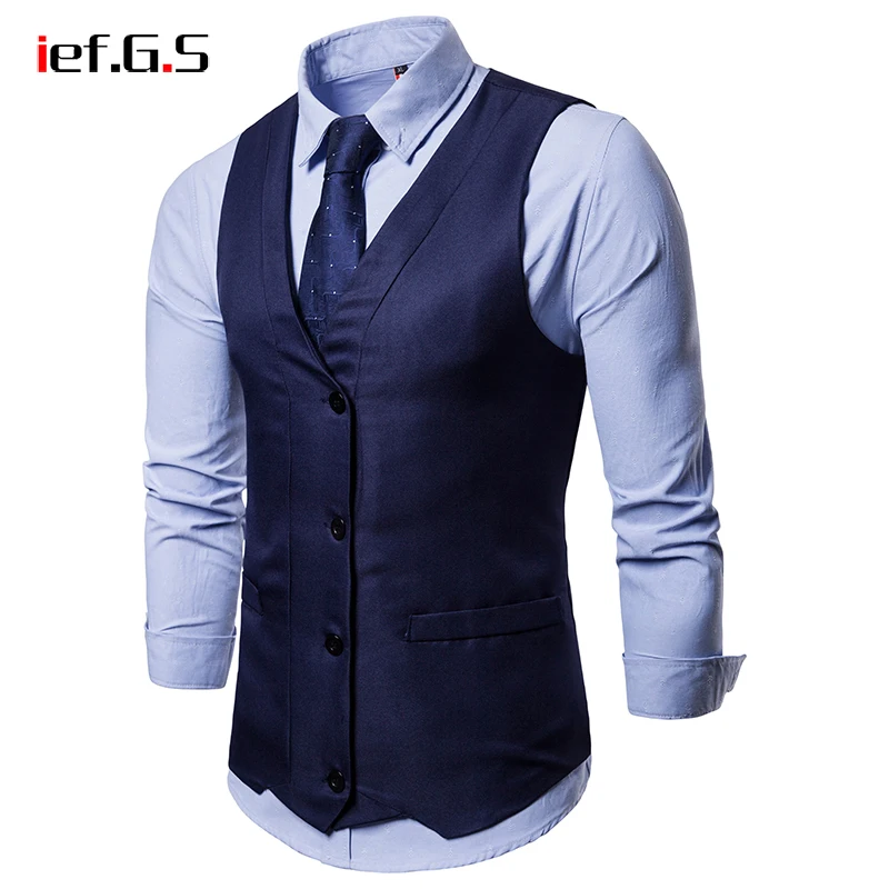 IEF.G.S 2018 New Dress Vests For Men Slim Fit Mens Suit Vest Male Waistcoat Gilet Homme Casual Sleeveless Formal Business Jacket