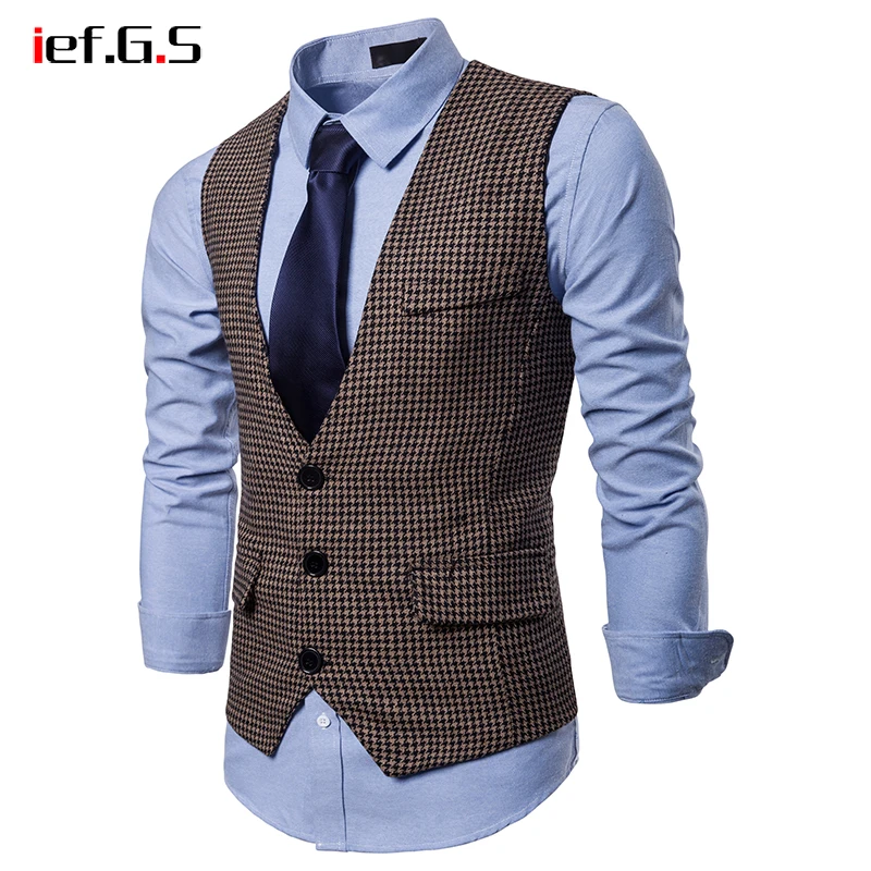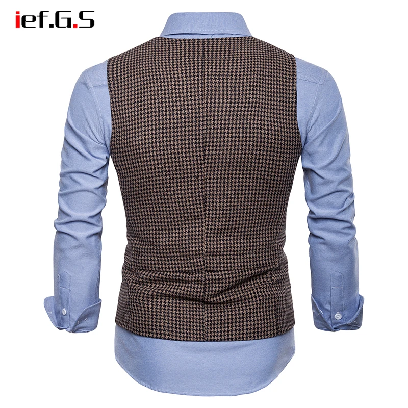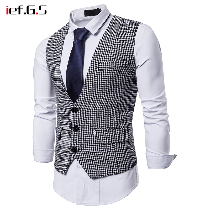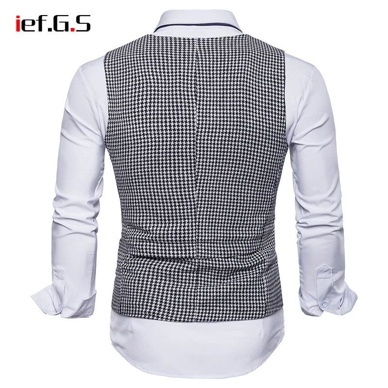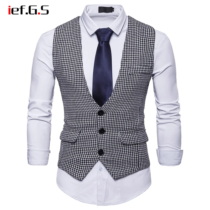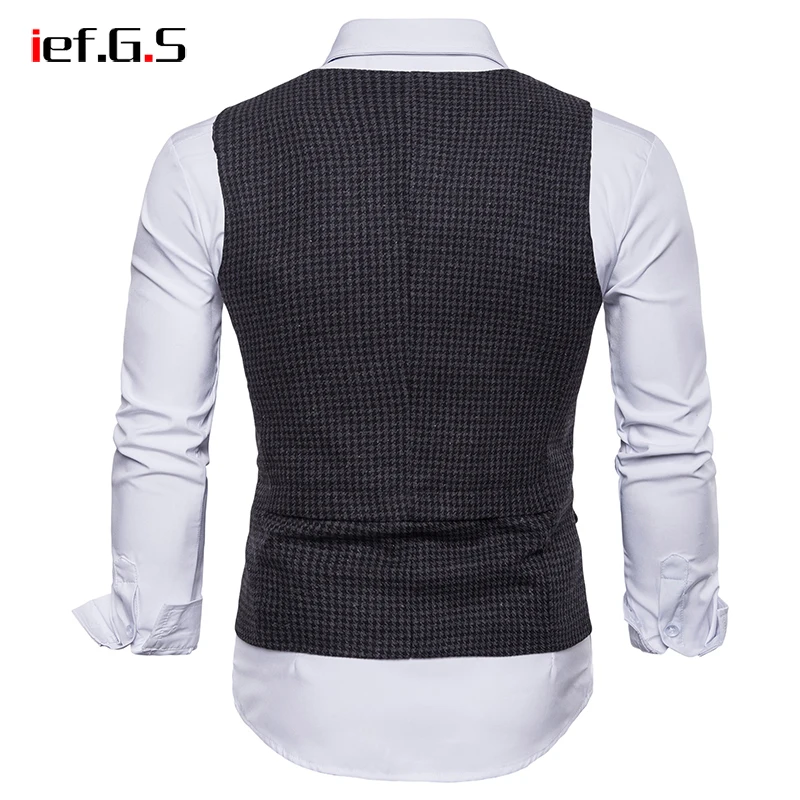 IEF.G.S Brand Plaid Vest Men Single Breasted Wedding Suit Vests Slim Fit Sleeveless Business Vests No Shirts Dress Vests Autumn