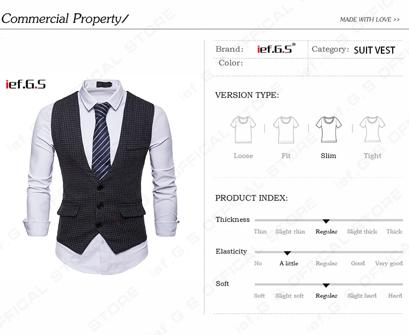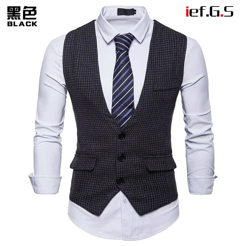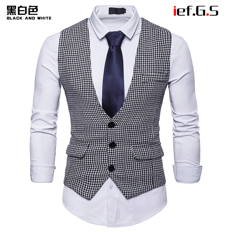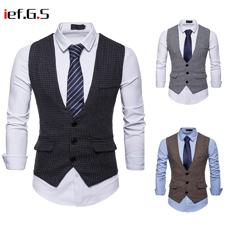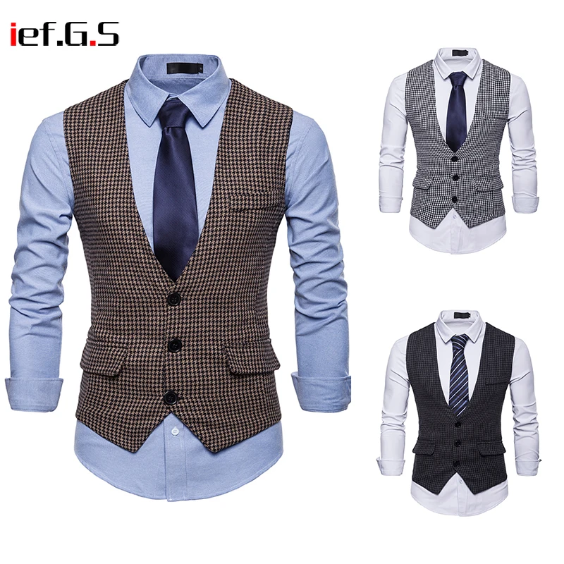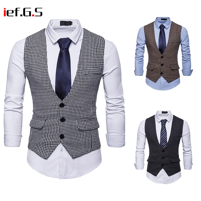 IEF.G.S Brand Plaid Vest Men Single Breasted Wedding Suit Vests Slim Fit Sleeveless Business Vests No Shirts Dress Vests Autumn