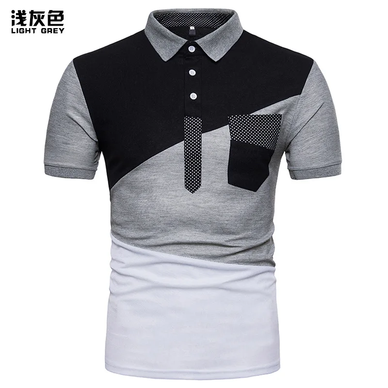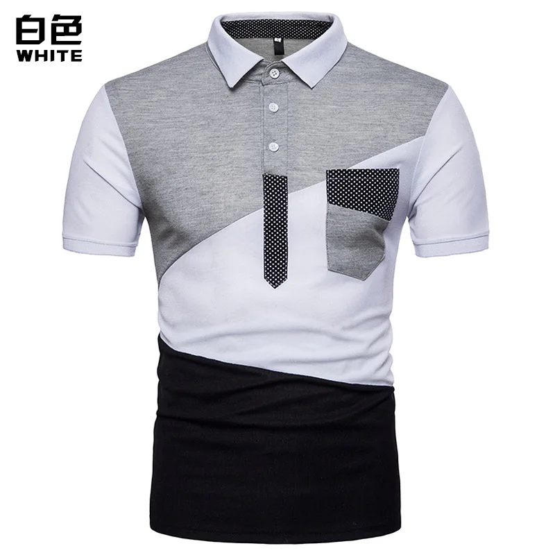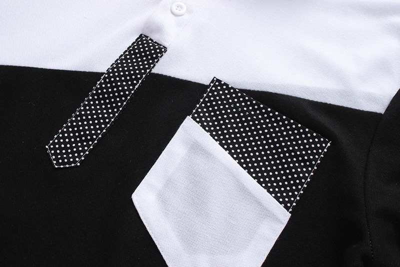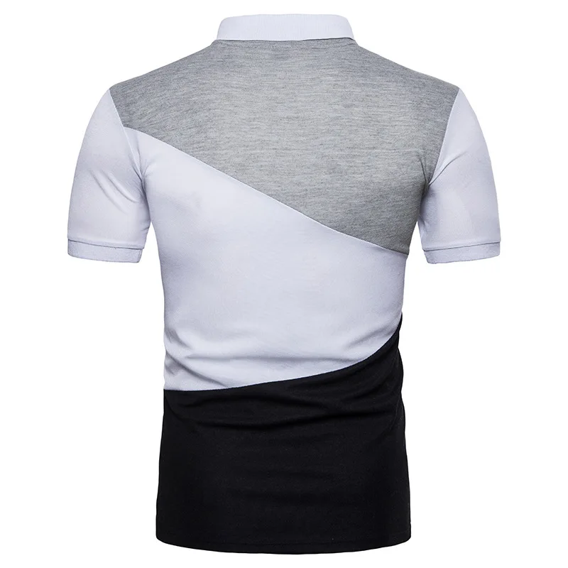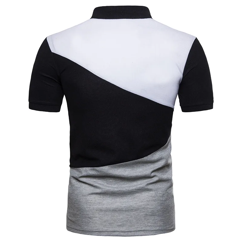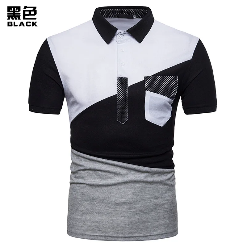IEF.G.S Men’s Casual POLO Shirt Summer Fashion New Black and White Irregular geometry Stitching Short sleeved Polo Shirt Slim