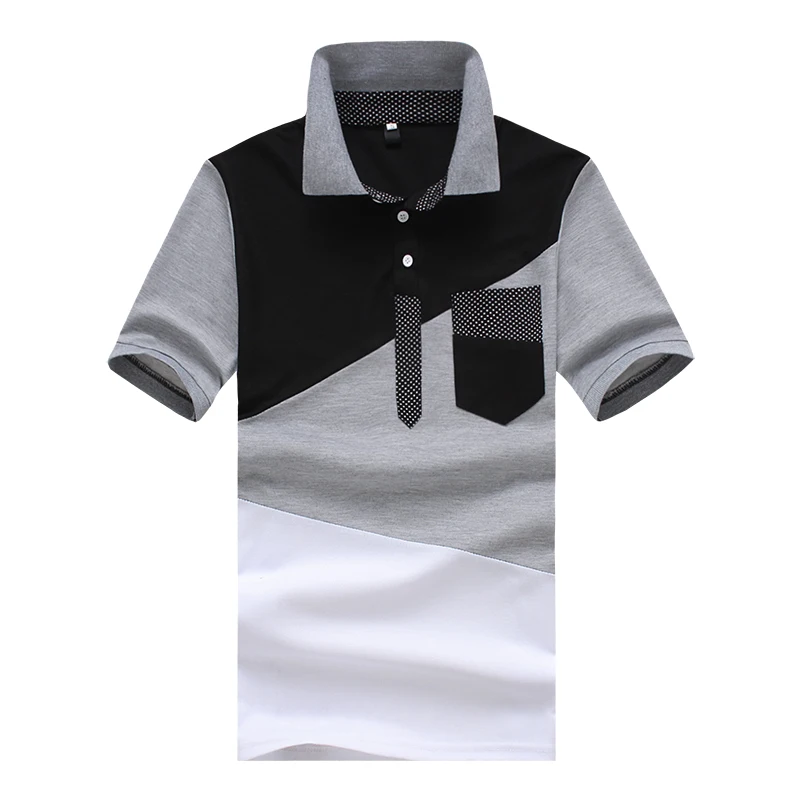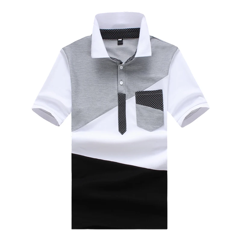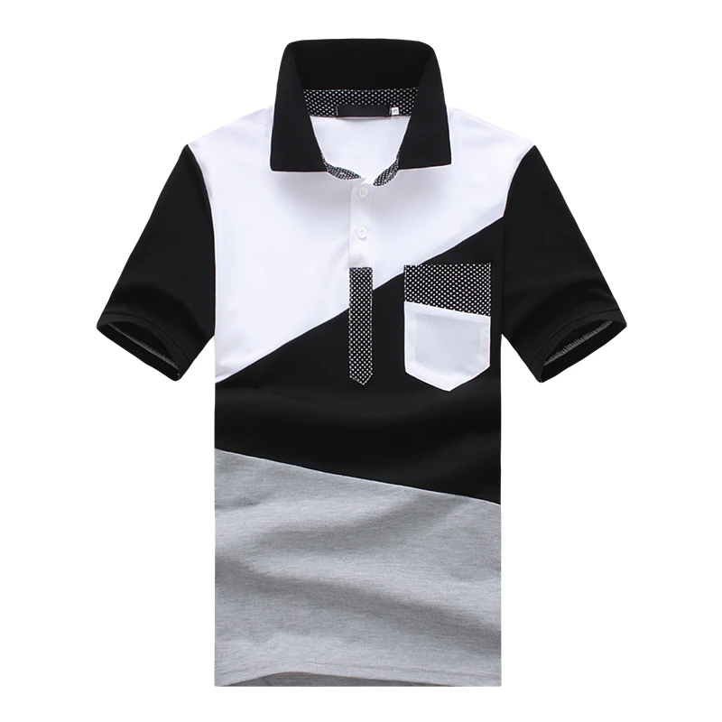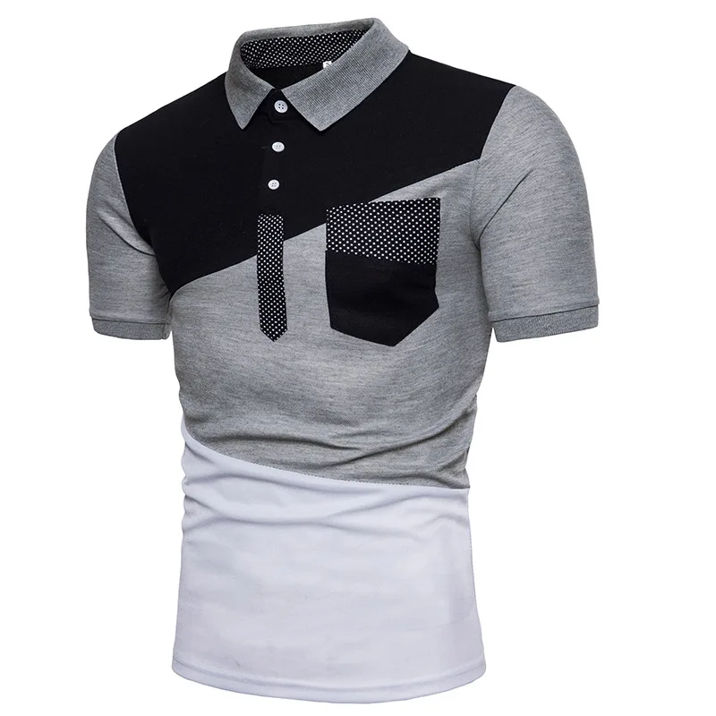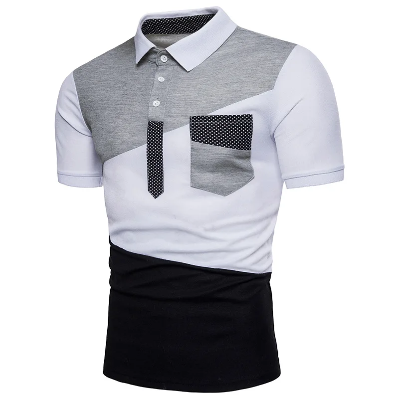 IEF.G.S Men’s Casual POLO Shirt Summer Fashion New Black and White Irregular geometry Stitching Short sleeved Polo Shirt Slim
