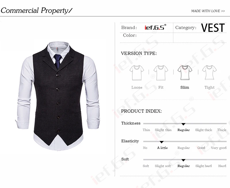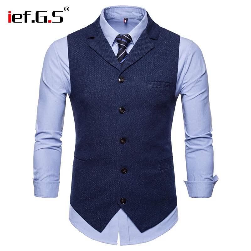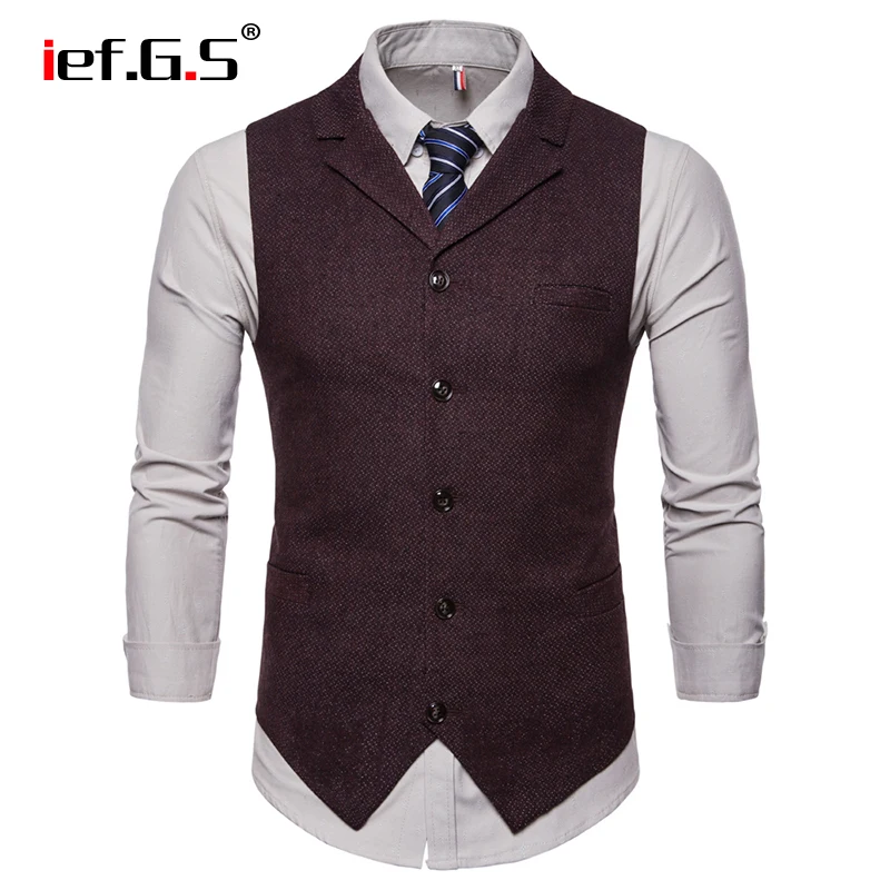 IEF.G.S Men’s Fashion Vest Speckle Waistcoat High-end Business Leisure Single Row Button Slim Vest Match Suit for Autumn Winter