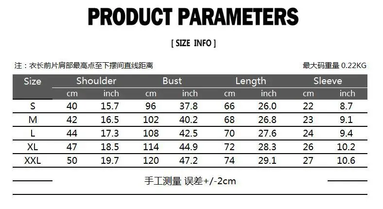 | XXL | 50 | 19.7 | 120 | 47.2 | 74 | 29.1 | 27 | 10.6 |