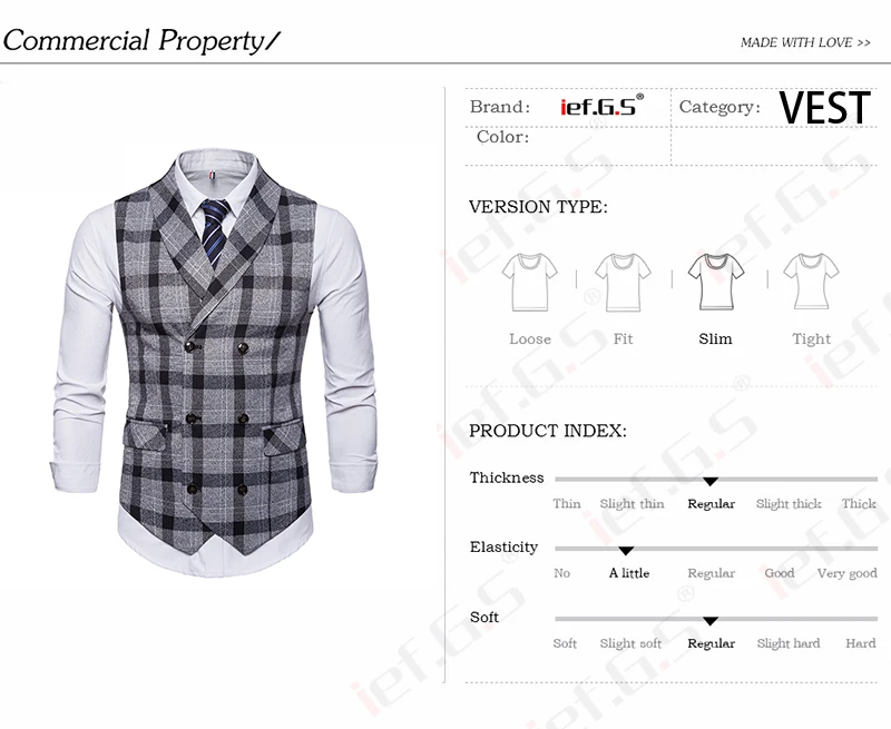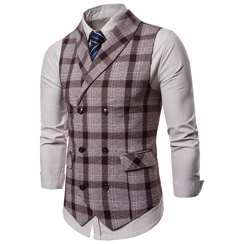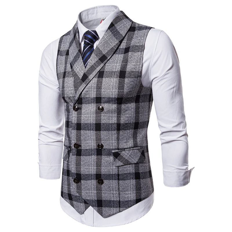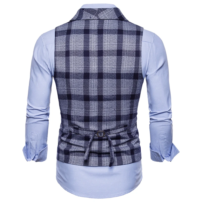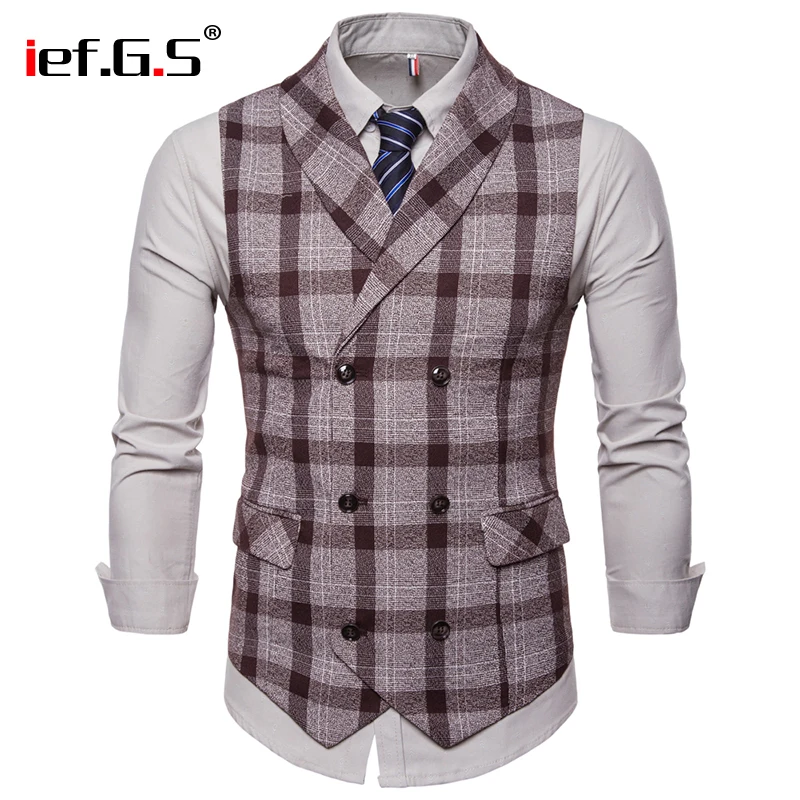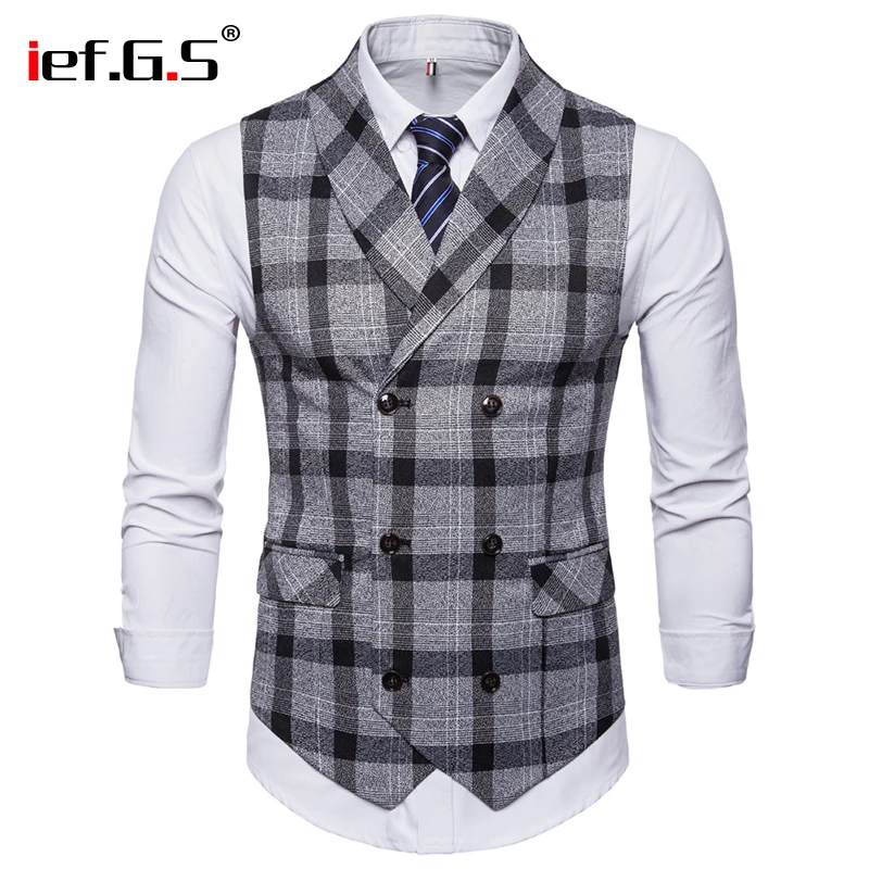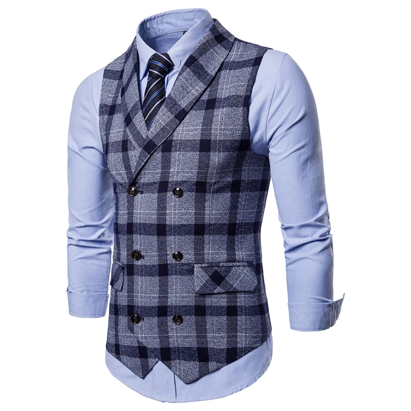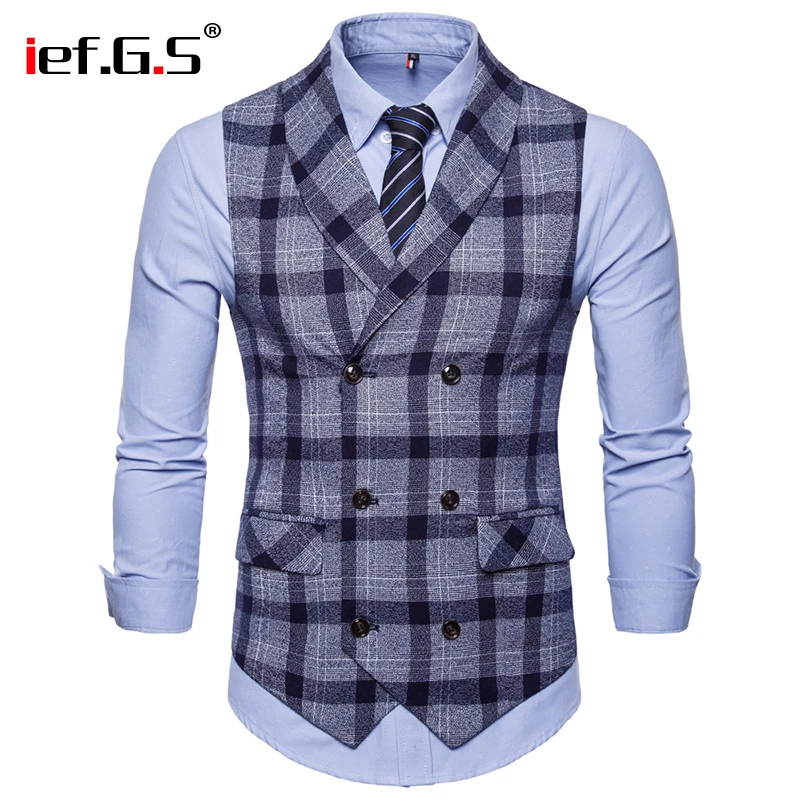 IEF.G.S waistcoat men High-end Business Casual double Row Button Blue stripes Slim vest Match Suit for men colete masculino