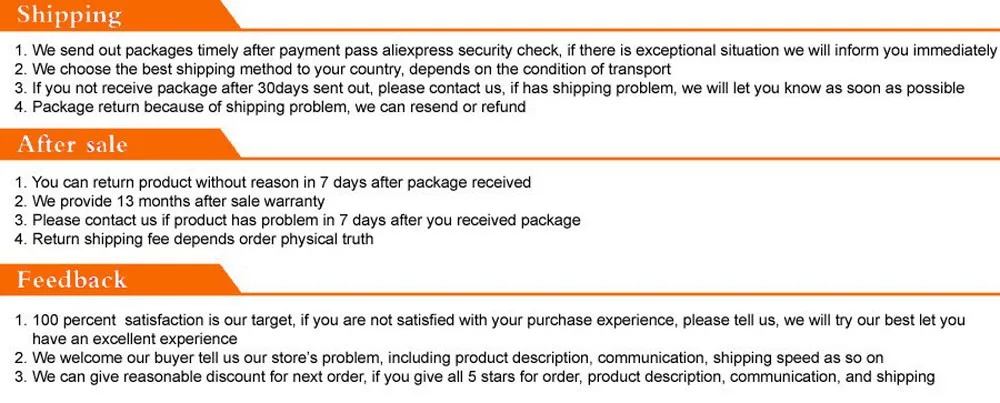 • If you did not receive the product within the guaranteed time( 45 days not including 2-5 day processing) you can request a refund or a reshipment.