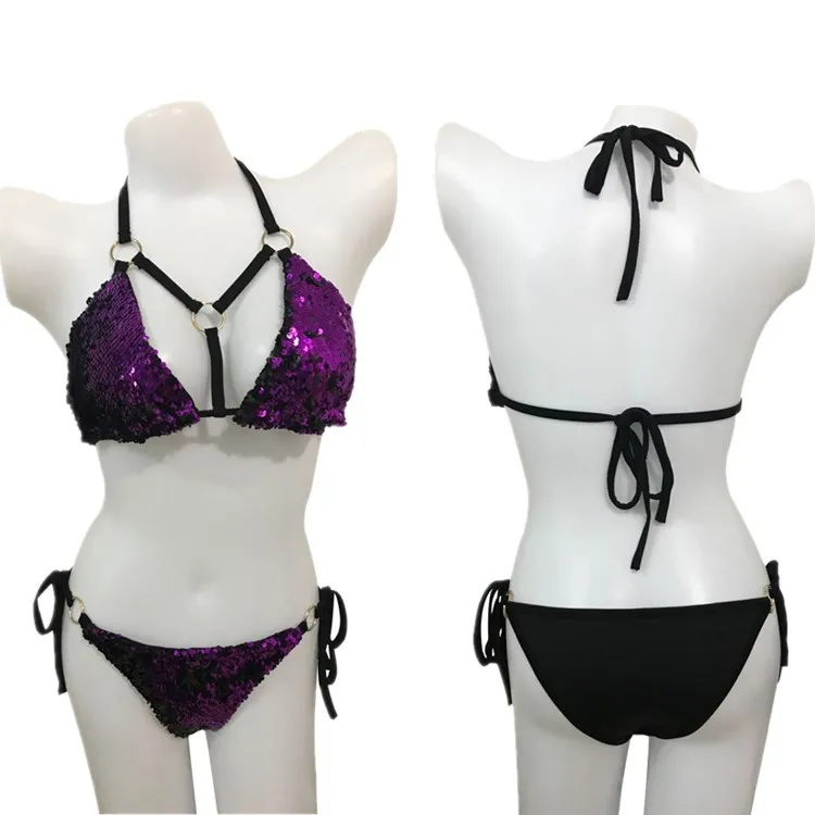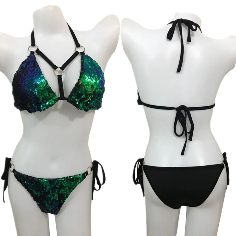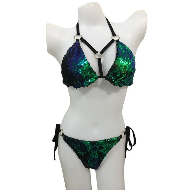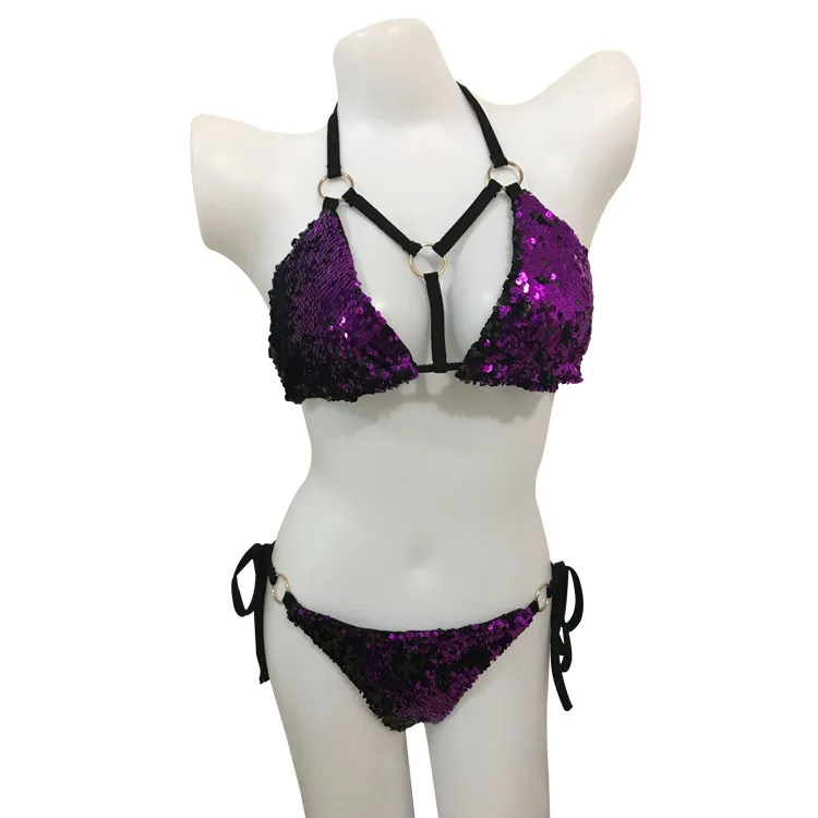 IMYSEN 2018 Sexy Beachwear Suit Buckle Strap Camisole Lingeries Suits Sequin Women Two Piece Set