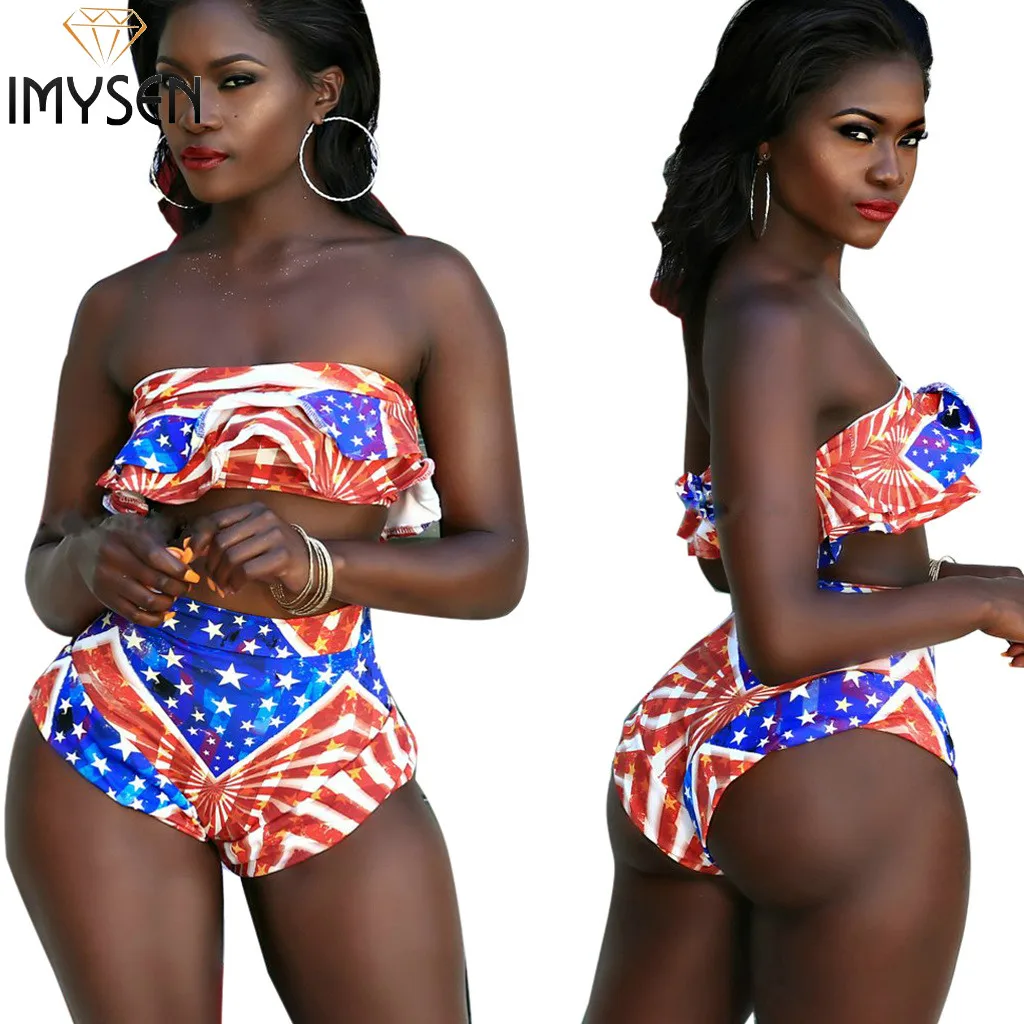 IMYSEN 2018 Sexy Beachwear Suit Print 2PCS Strapless Top Bottoms Women Two Piece Set