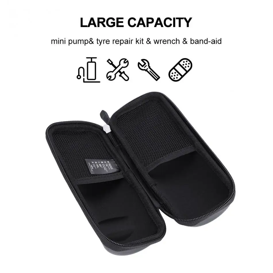 - Large capacity, you can storage necessary things, like mini pump, tyre repair kit, wrench and band aid.