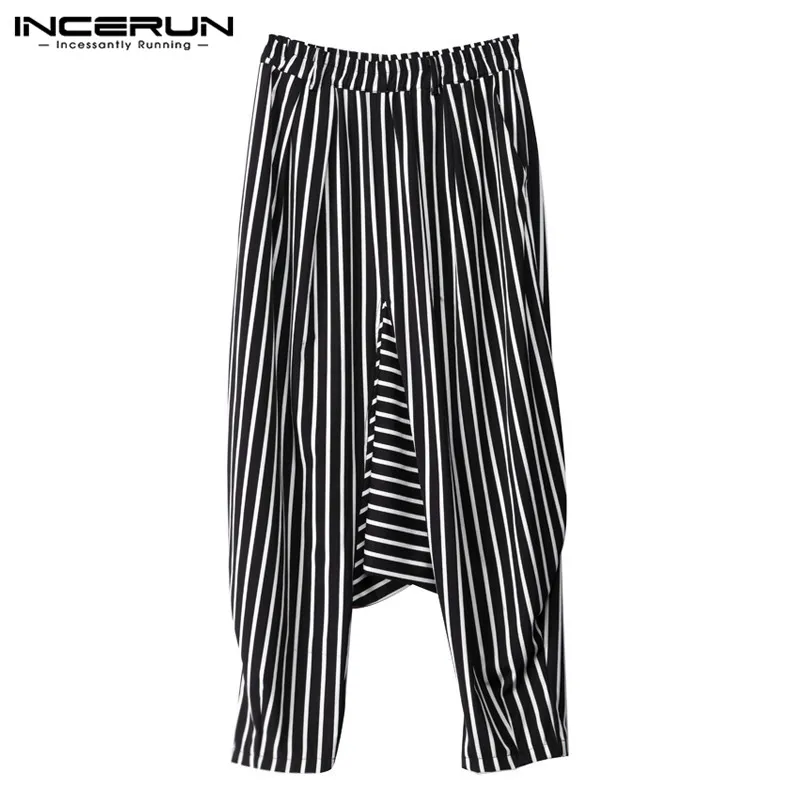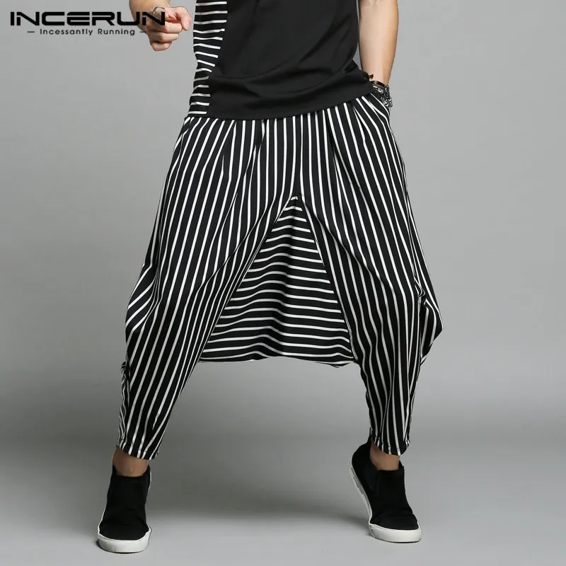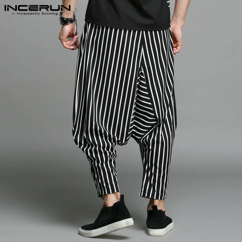 INCERUN 2018 Casual Men Harem Pants Stripe Joggers Drop Crotch Loose Trousers Men Wide Leg Streetwear Cool Stylish Pants S-5XL
