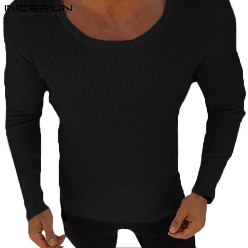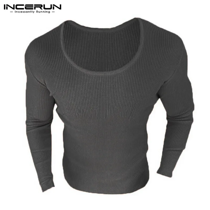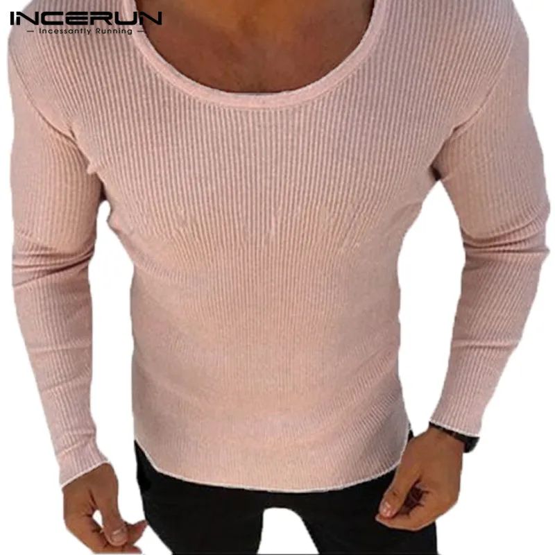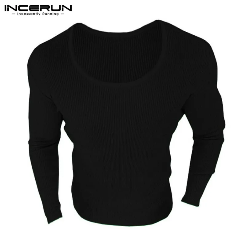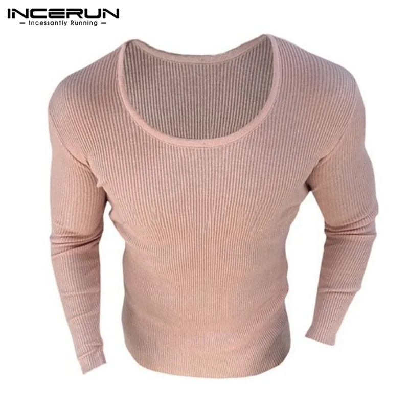 INCERUN 2018 Men Slim Sweater Knitted Long Sleeve O-neck Elastic Men Pullovers Winter Autumn Casual Solid Color Tops Sweaters