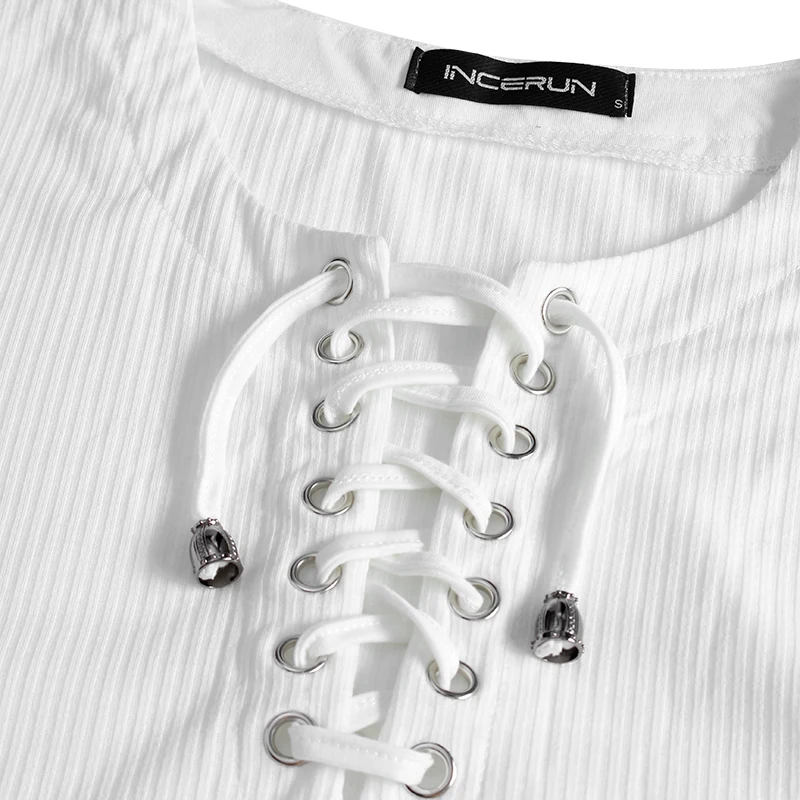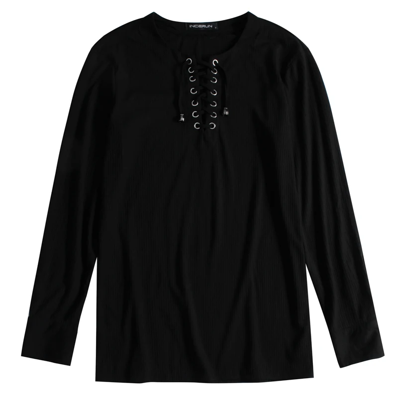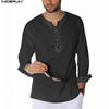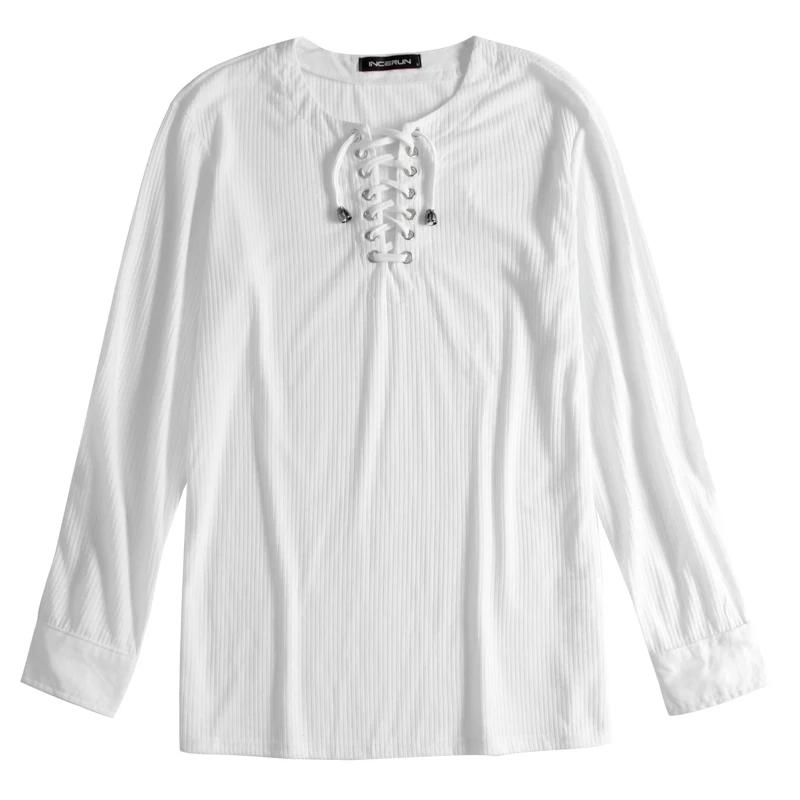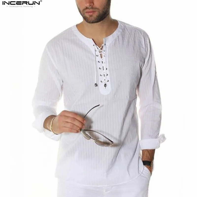 INCERUN 2018 New Casual Men’s Shirts Long Sleeve Solid Lace Up Tunic Vintage Slim Male Tops Leisure Breathable Chemise Plus Size