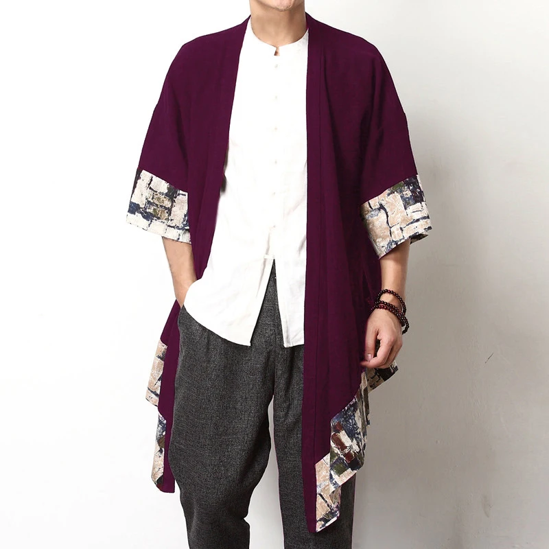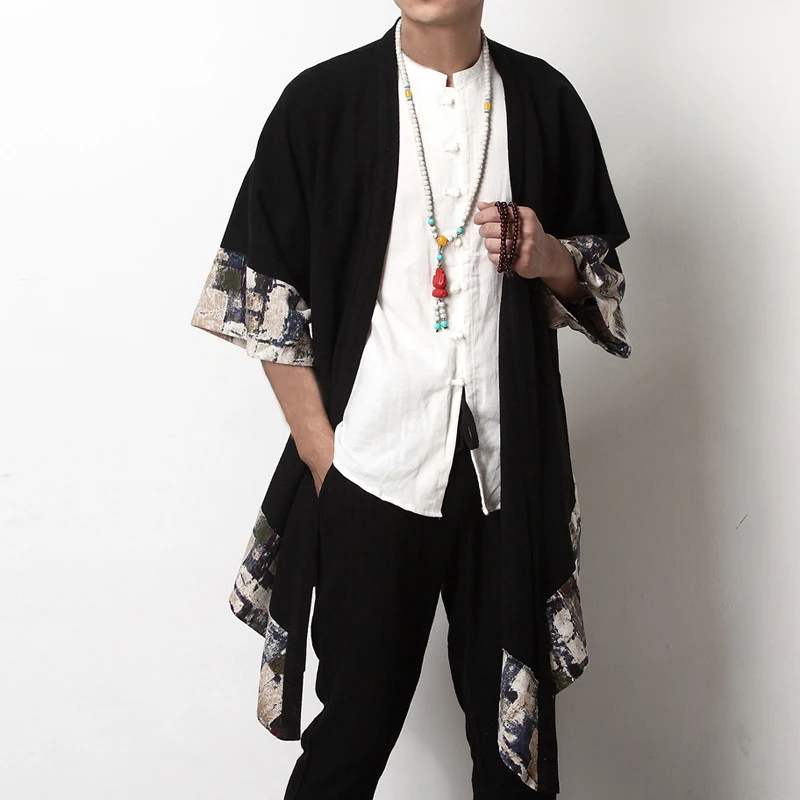 Product Description:Chinese Mens Casual Fashion Shirt Floral Irregular Loose Long Cloak Coat