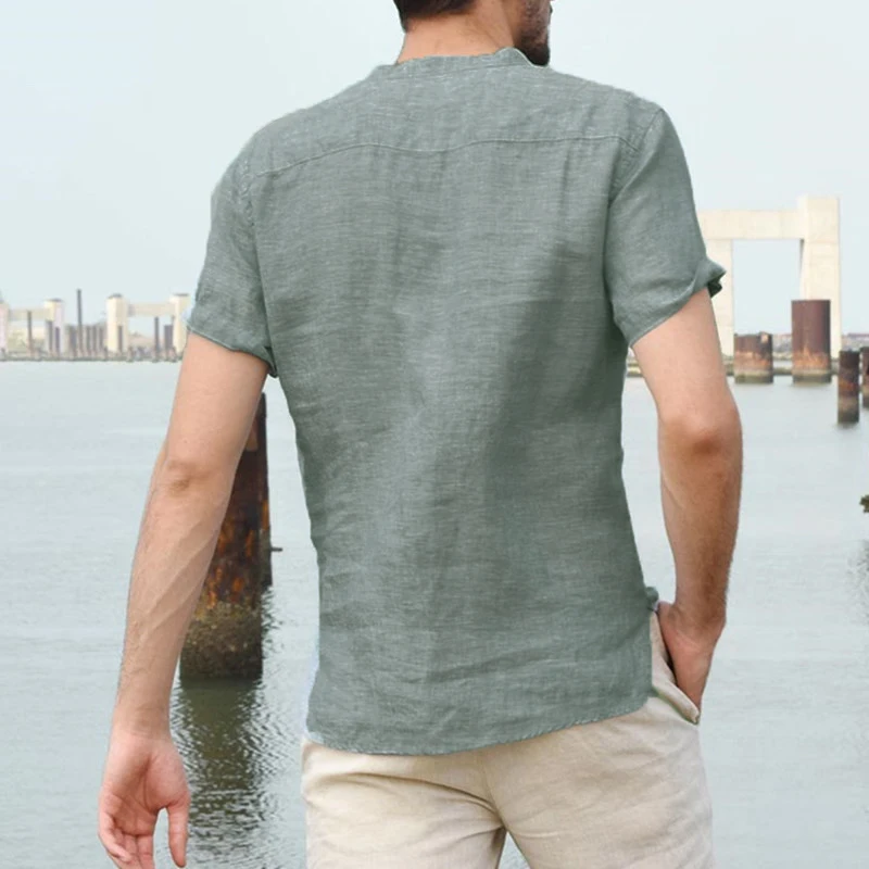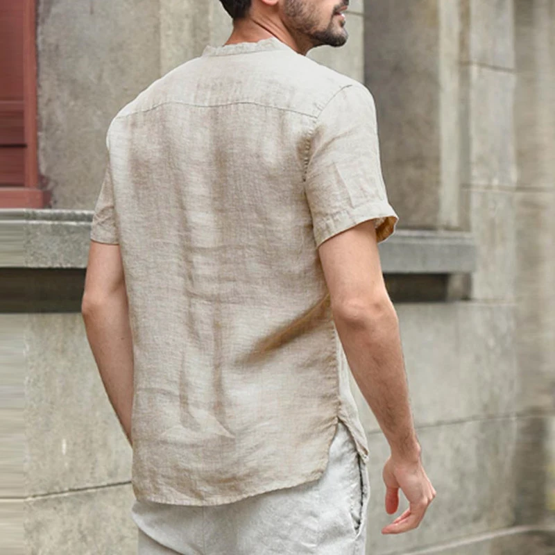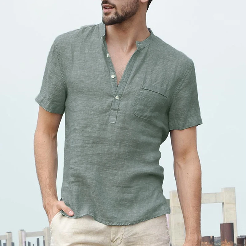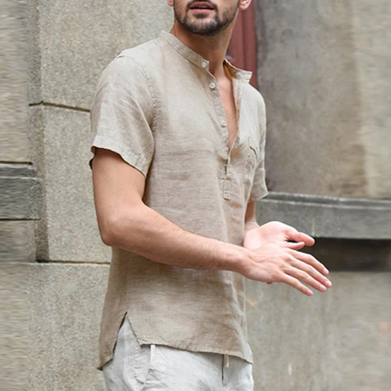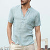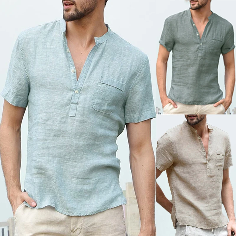 Product Description:Mens Summer V-Neck Button T-shirt Linen Loose Casual Short Sleeve Tee Tops