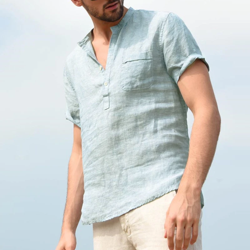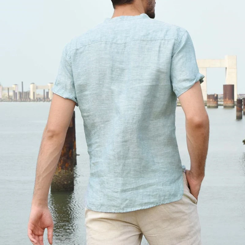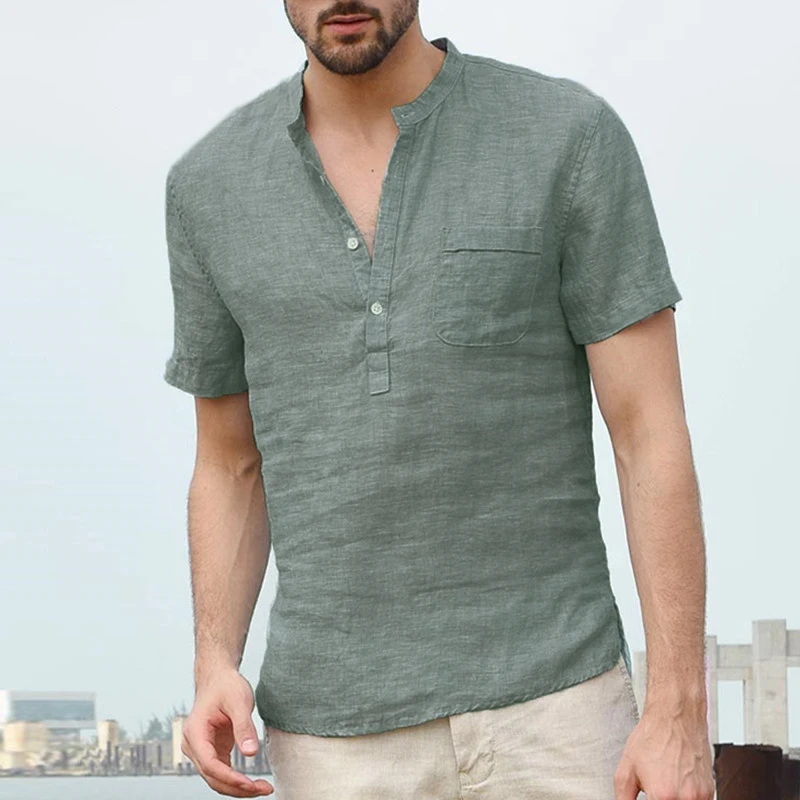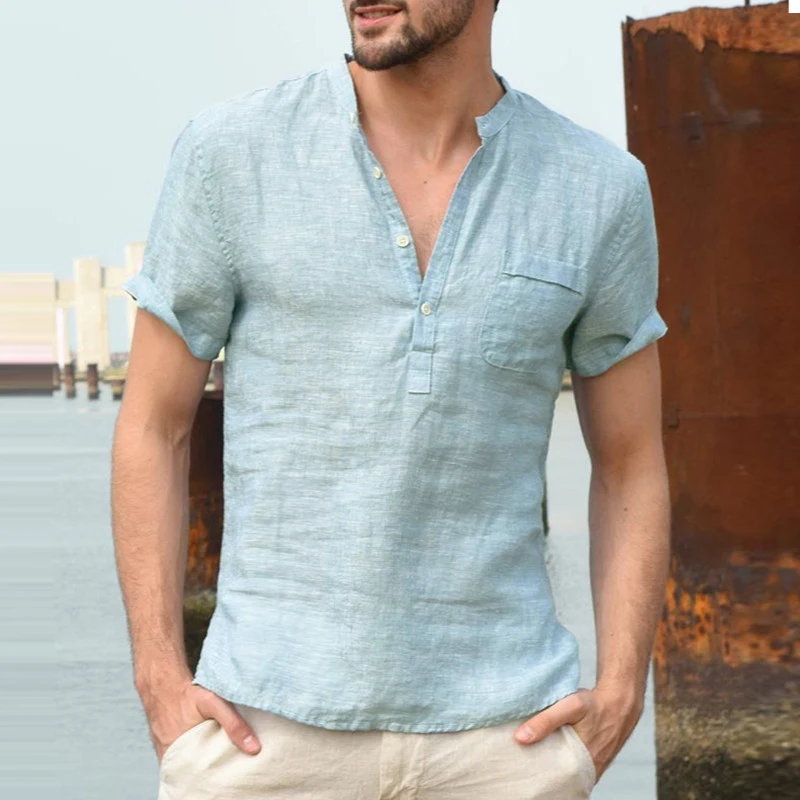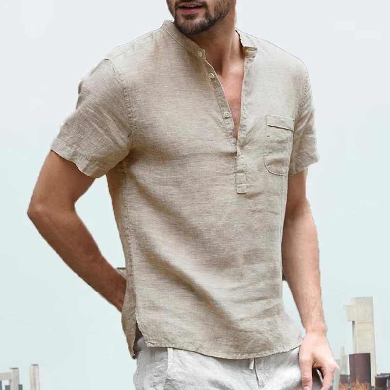 Product Description:Mens Summer V-Neck Button T-shirt Linen Loose Casual Short Sleeve Tee Tops