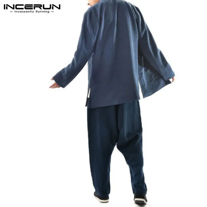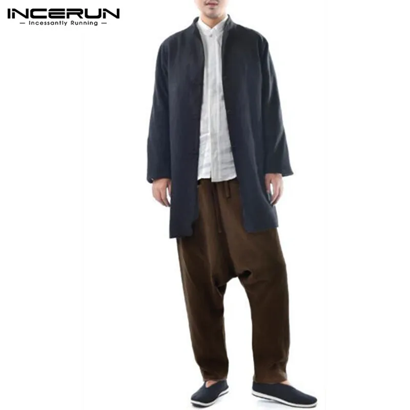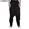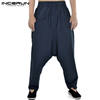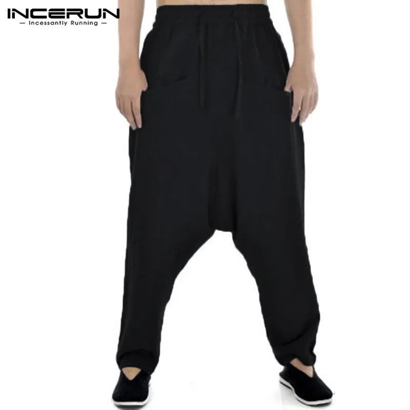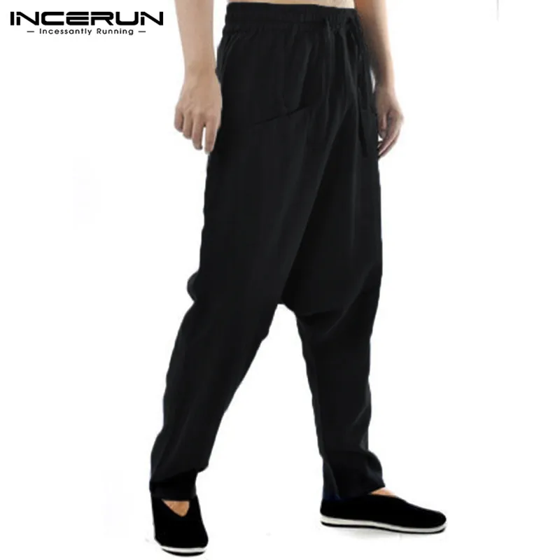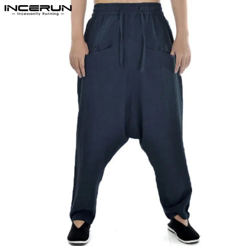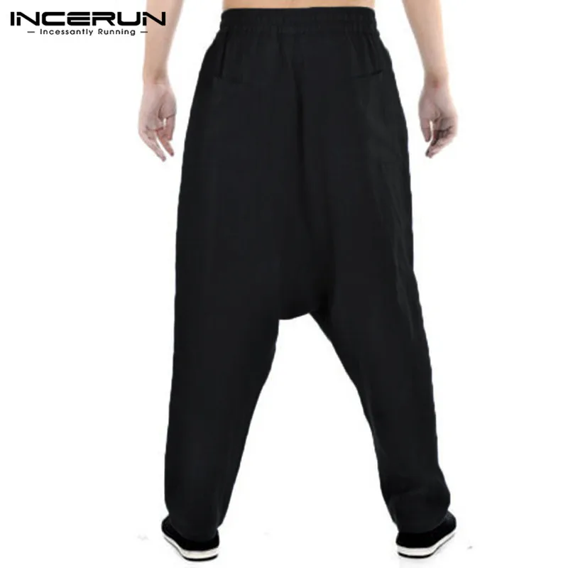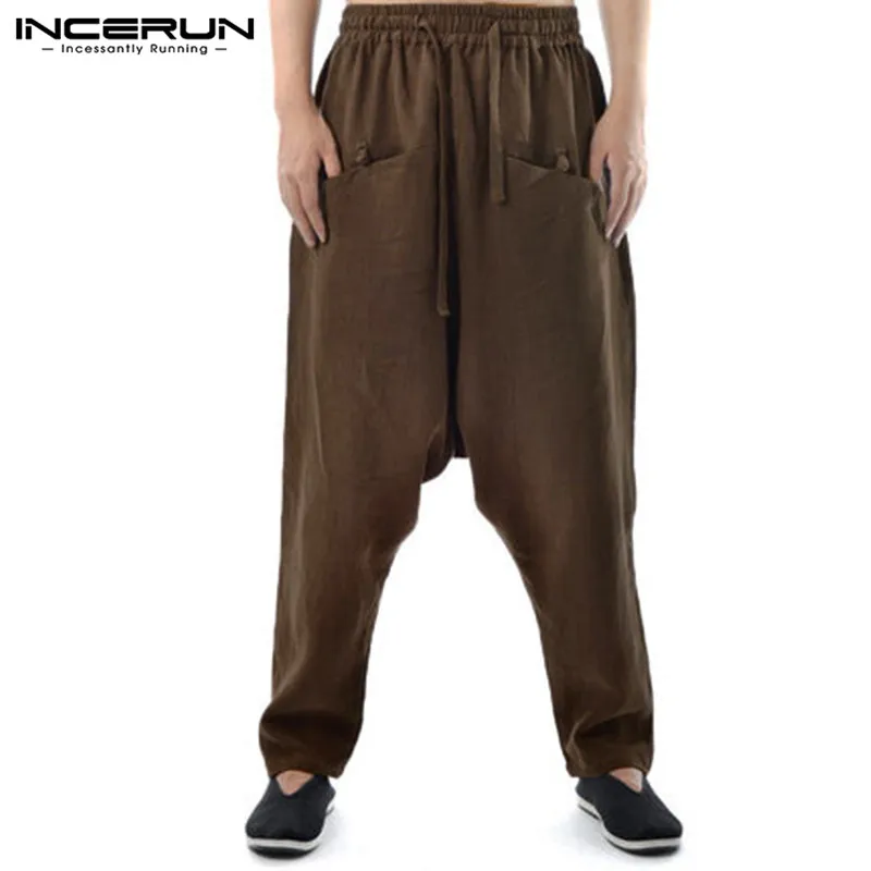 INCERUN Men Harem Pants Drop Crotch Solid Cotton Linen Casual Joggers Trousers Men Baggy Vintage Hip-hop Pantalon Hombre S-5XL