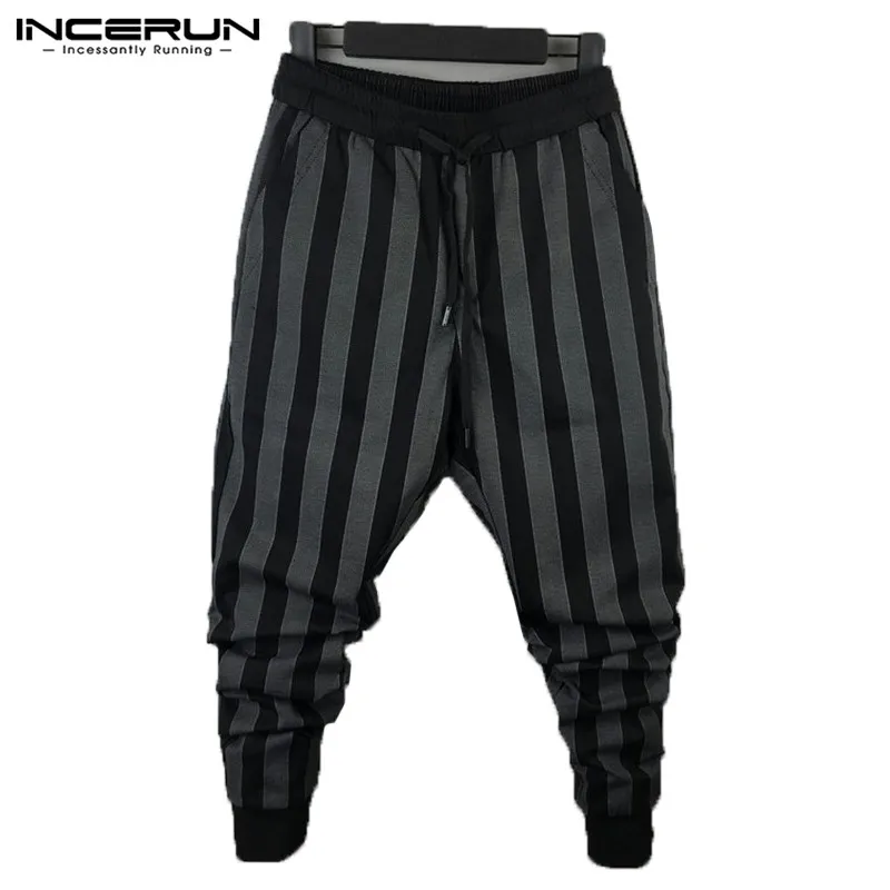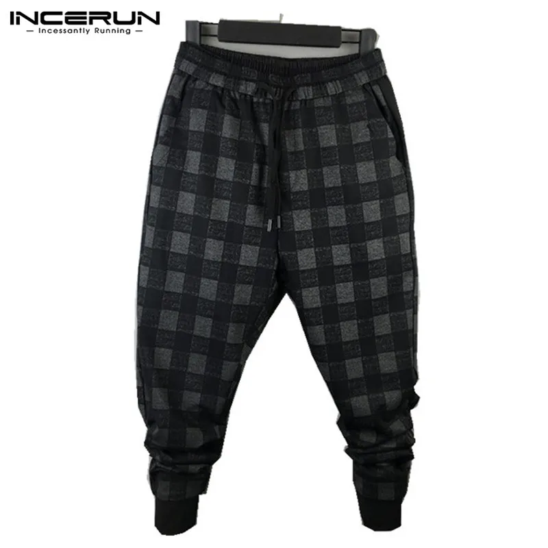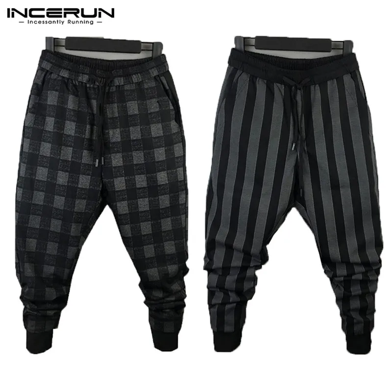 INCERUN Winter Men Casual Pants Plaid Stripe Stylish Joggers Trousers Men Streetwear Fashion Harem Pants Pantalon Hombre S-5XL