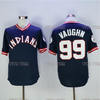 Indians Jersey 99 Rick Vaughn Baseball Jersey High Quality Throwback Black White S-3XL Free Shipping