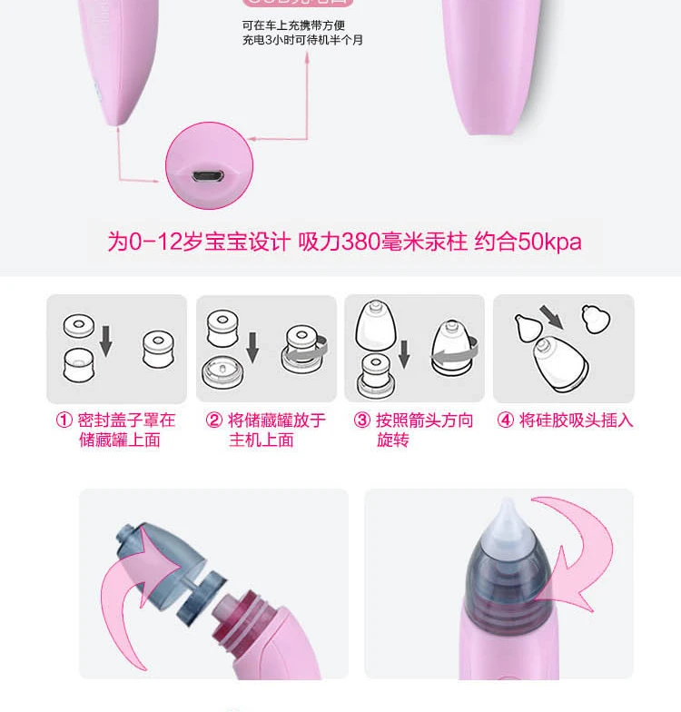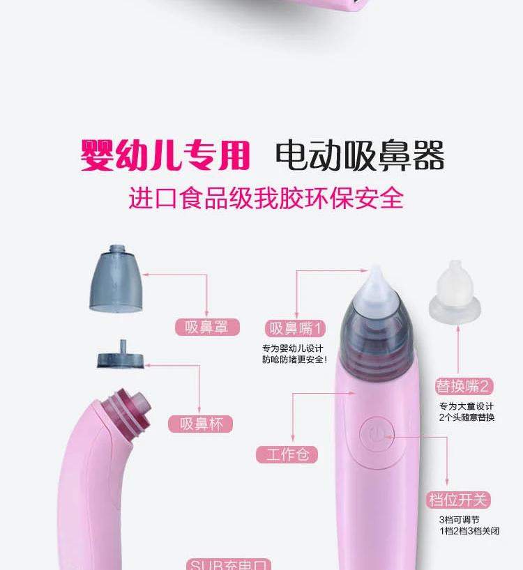 Infant Baby Electric Nose Suction Nasal Aspirator Rechargable Newborn Baby Stuffy Runny Nose Electric Nasal Cleaning Aspirator