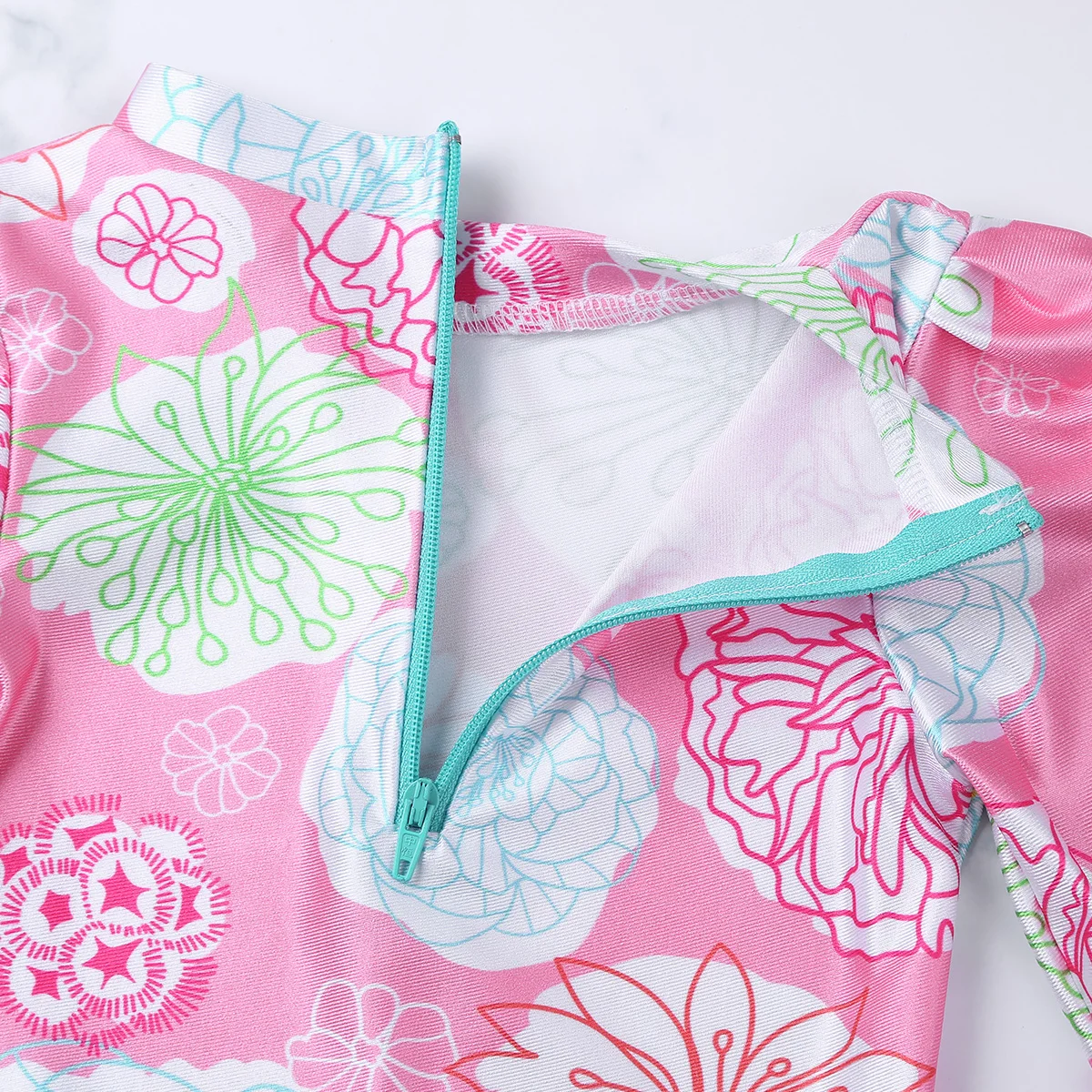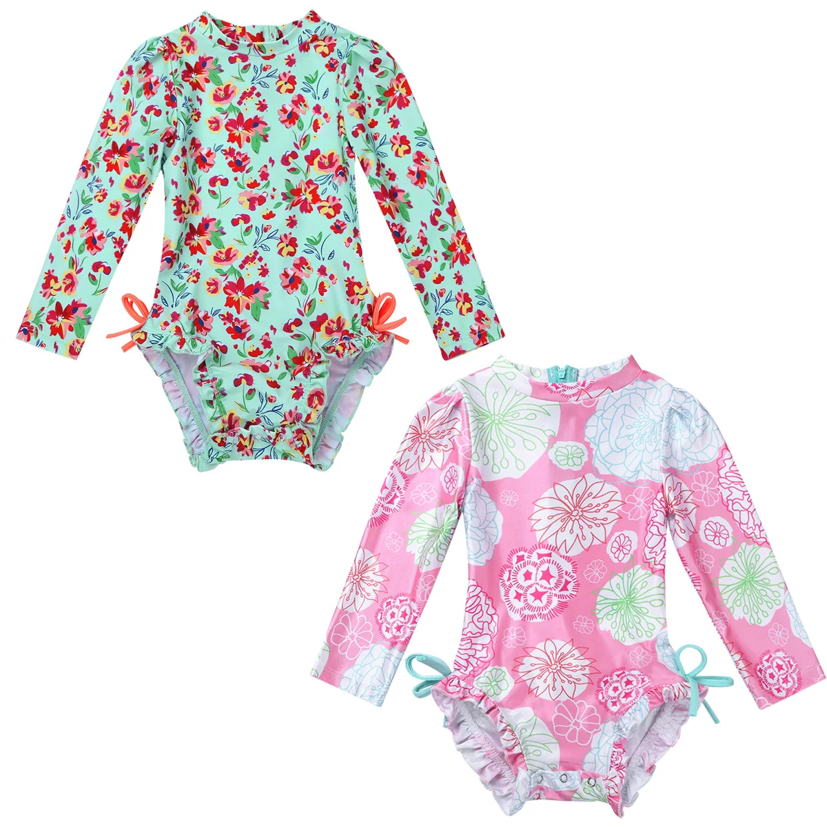 Infant Baby Girls One-piece Long Sleeves Floral Printed Sun Protection Swimsuit Swimwear Bathing Suit Rash Guard SZ 0-24 Months