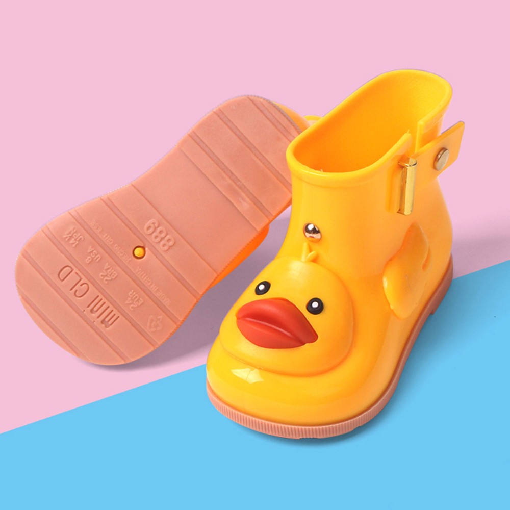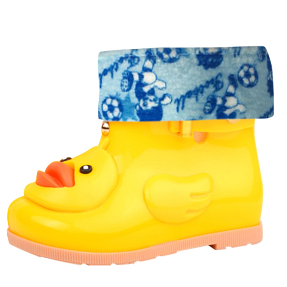Infant Kids Children Baby Cartoon Duck Rubber Waterproof Warm Boots Rain Shoes