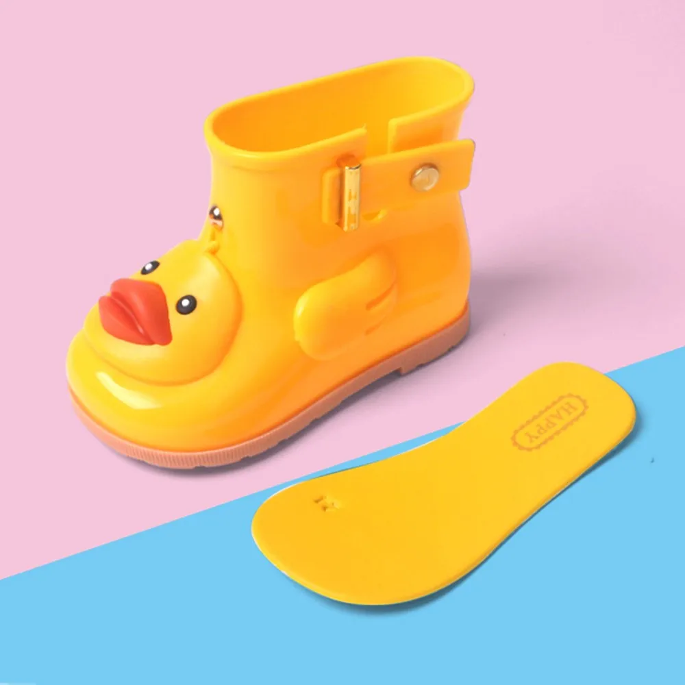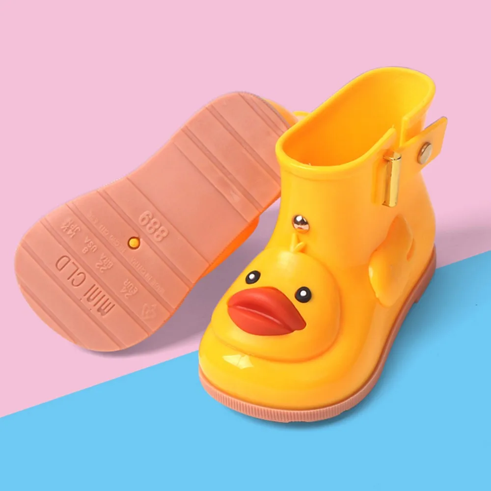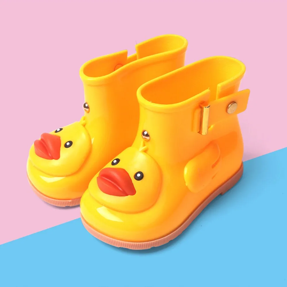 Infant Kids Children Baby Cartoon Duck Rubber Waterproof Warm Boots Rain Shoes