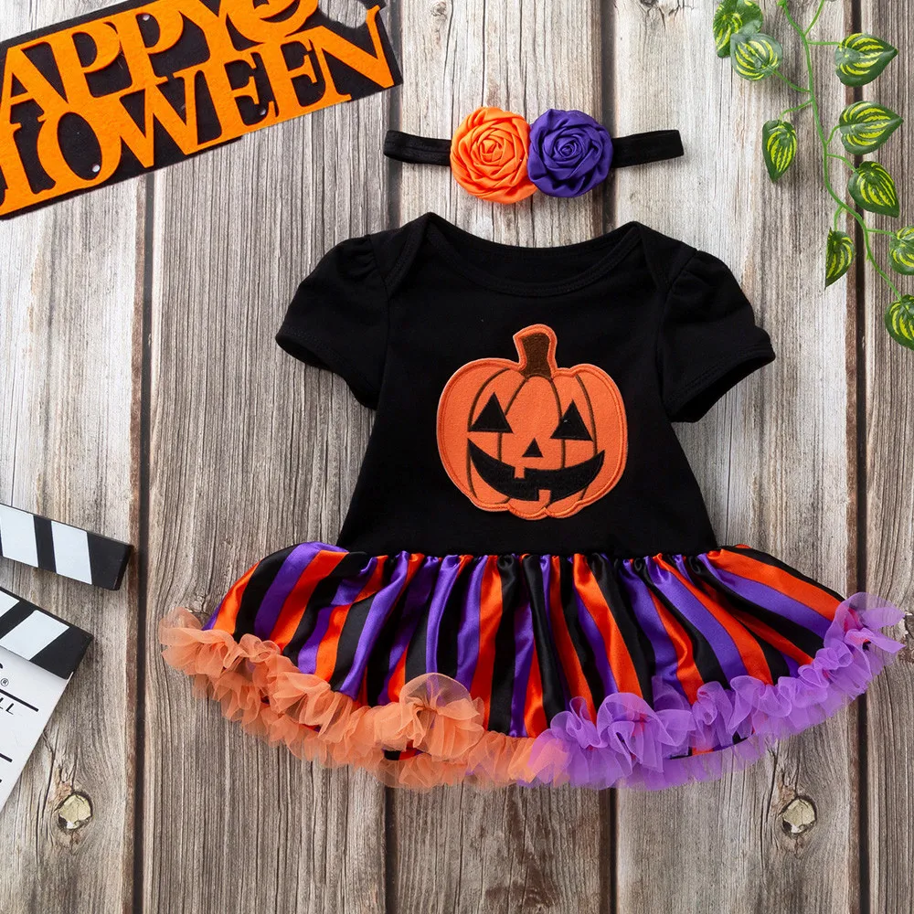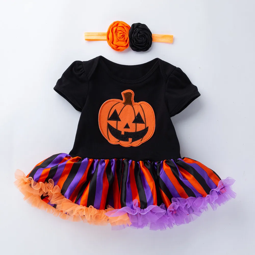 Infant Toddler Baby Girls Halloween Pumpkin Bow Party Dress Clothes Dresses