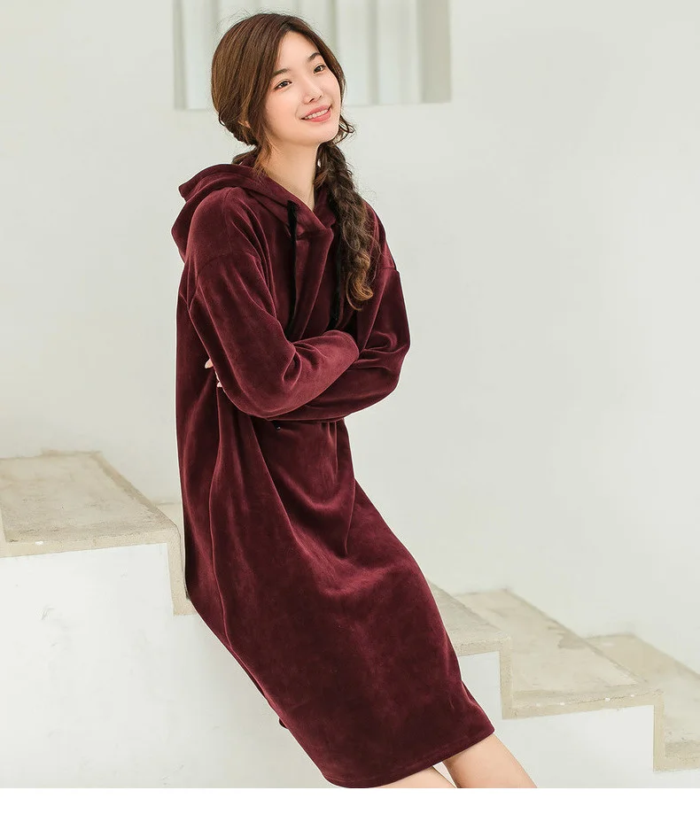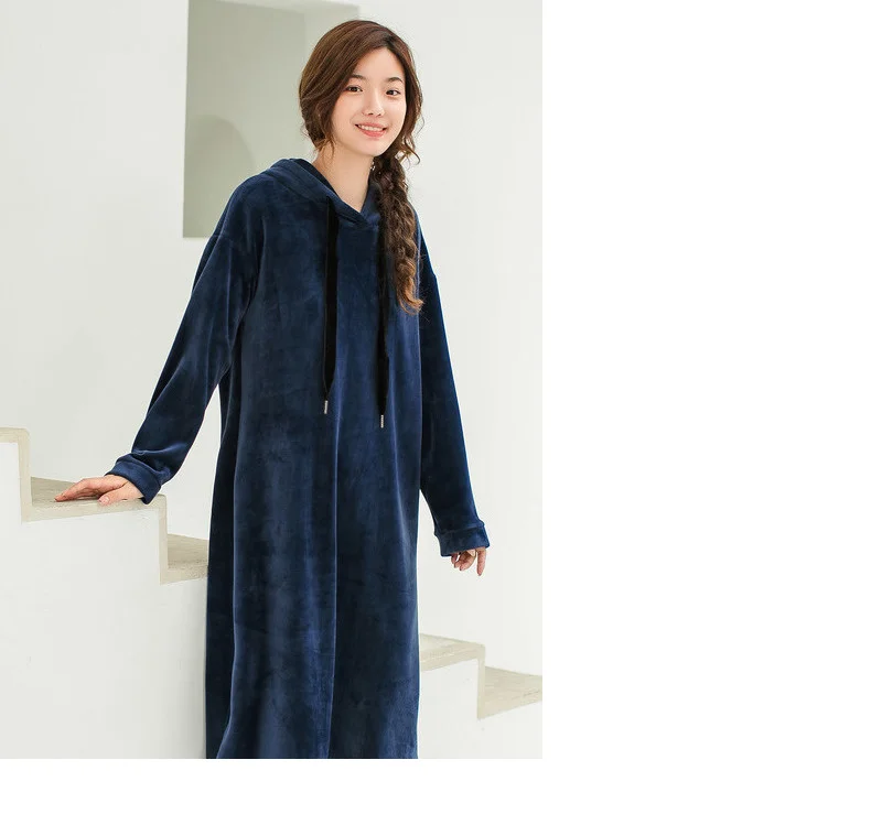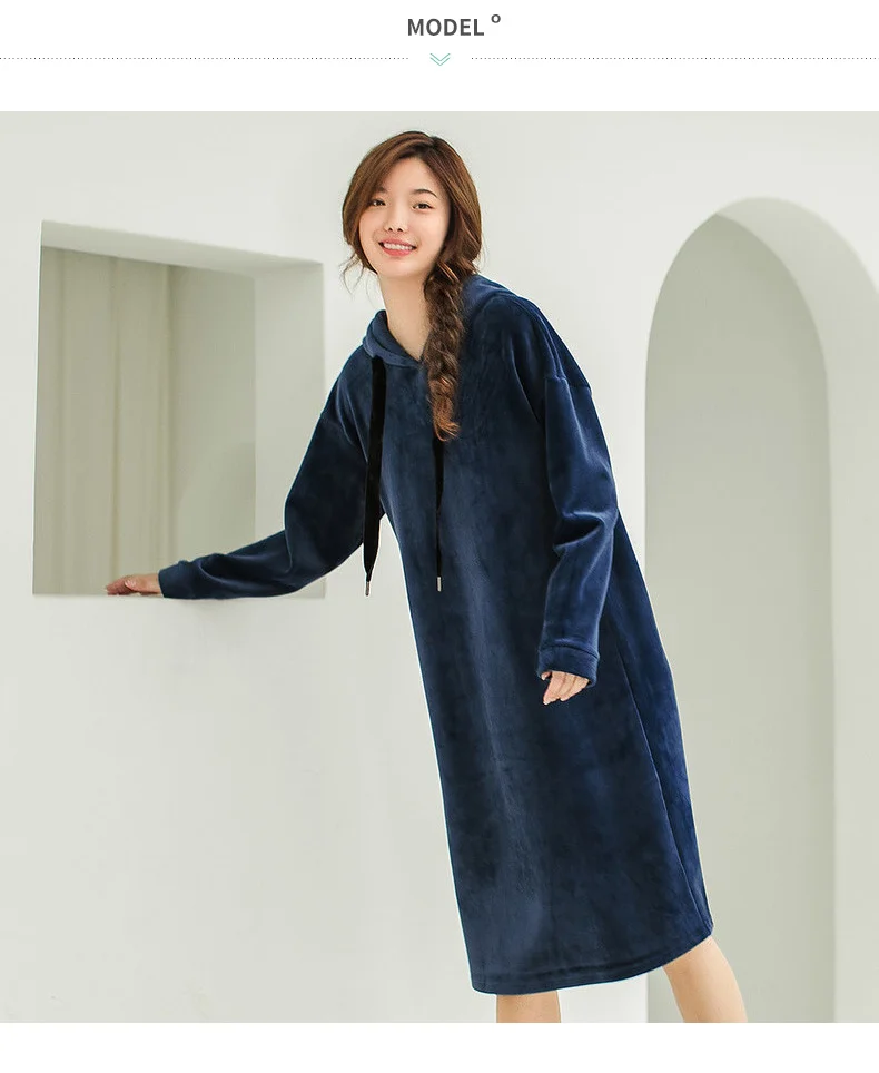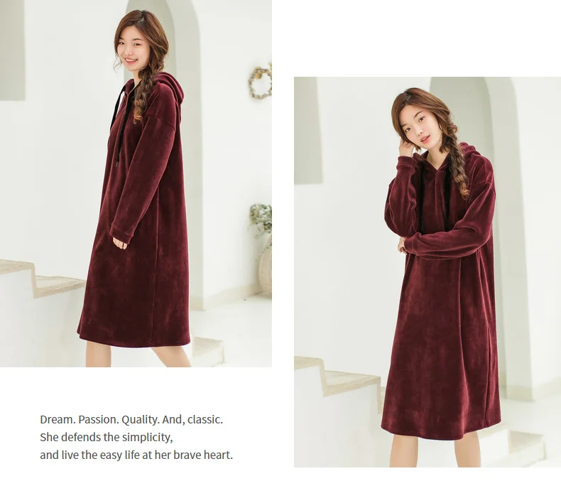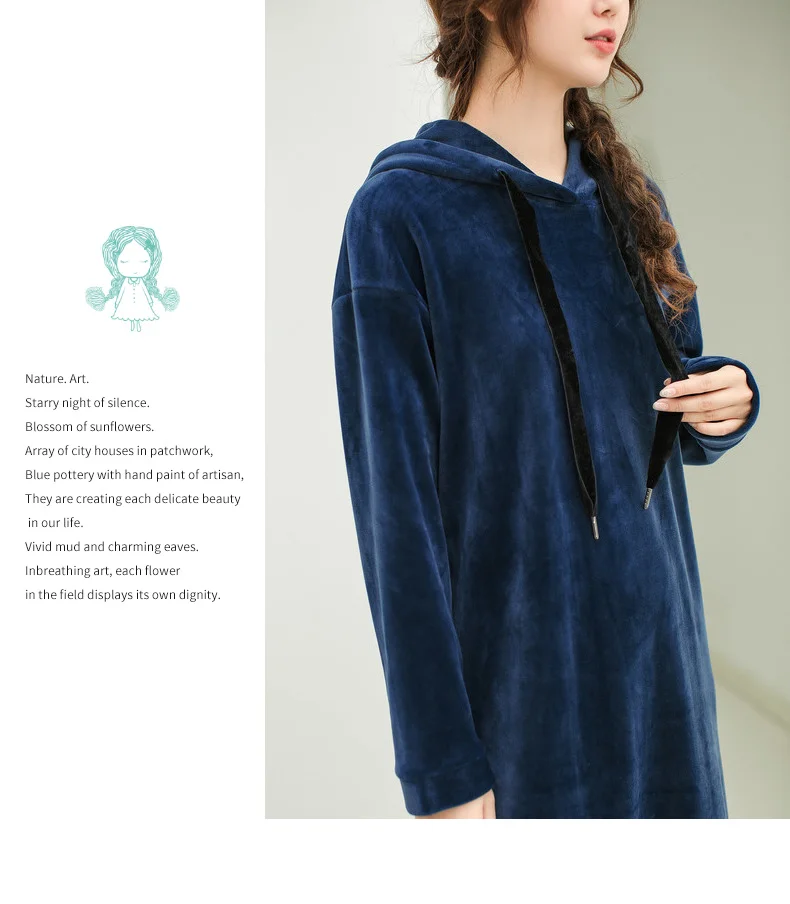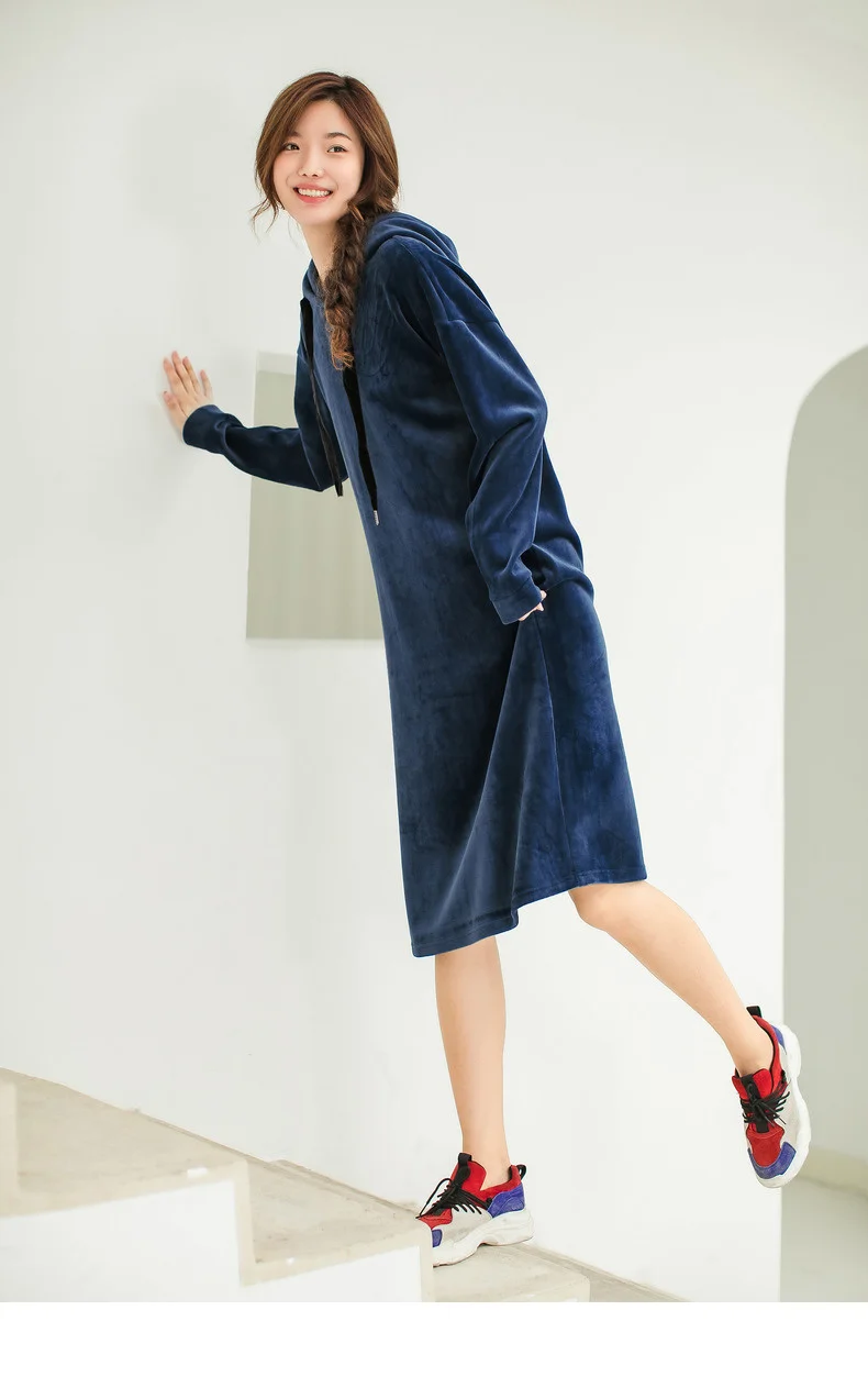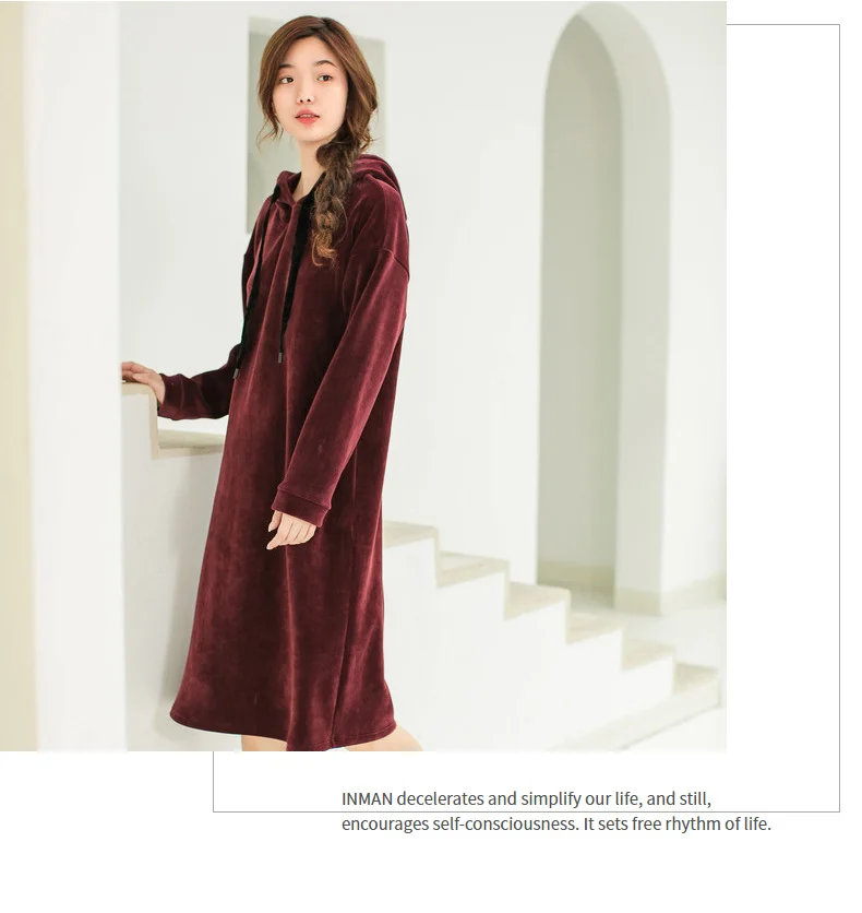 INMAN 2018 Winter New Arrival Hoody Drawstring Loose Casual Style Long Sleeve Solid Color Women Knee Length Dress