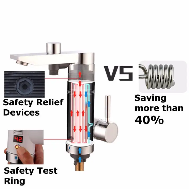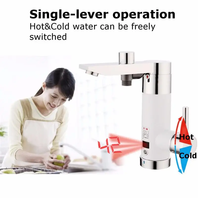 Instant Tankless 220V Electric Water Heater Faucet Cold & Hot Mixer Tap Under Water Electric Heating Kitchen Bathroom 3000W