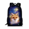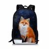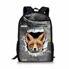 INSTANTARTS Cute 3D Animal Fake Denim Pocket Fox Print Children Schoolbags Large Backpacks for Teen Boys Girls Leisure Rucksacks