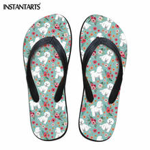 INSTANTARTS Cute Bichon Frise Flower Printing Women Slippers Summer Beach Rubber Flip Flops Fashion Girls Light Weight Sandals