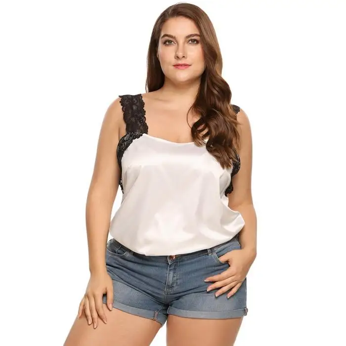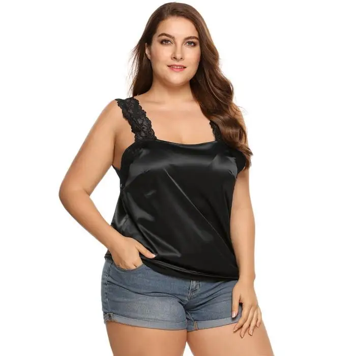 IN’VOLAND Plus Size L-4XL Women Tank Tops Spring Summer Fashion Sexy Spaghetti Strap Sleeveless Lace Pullover Camis Large Size
