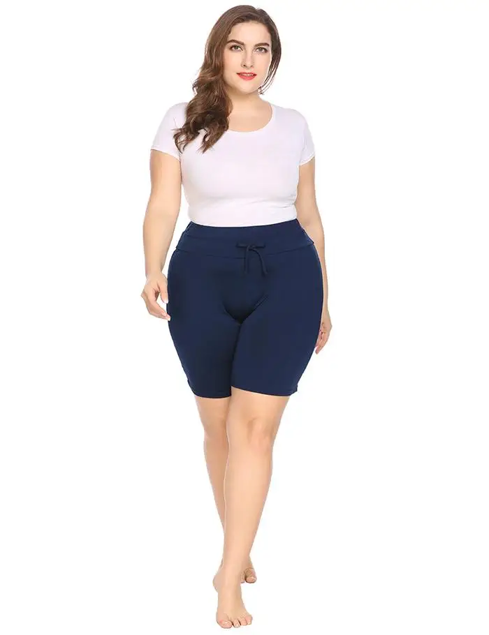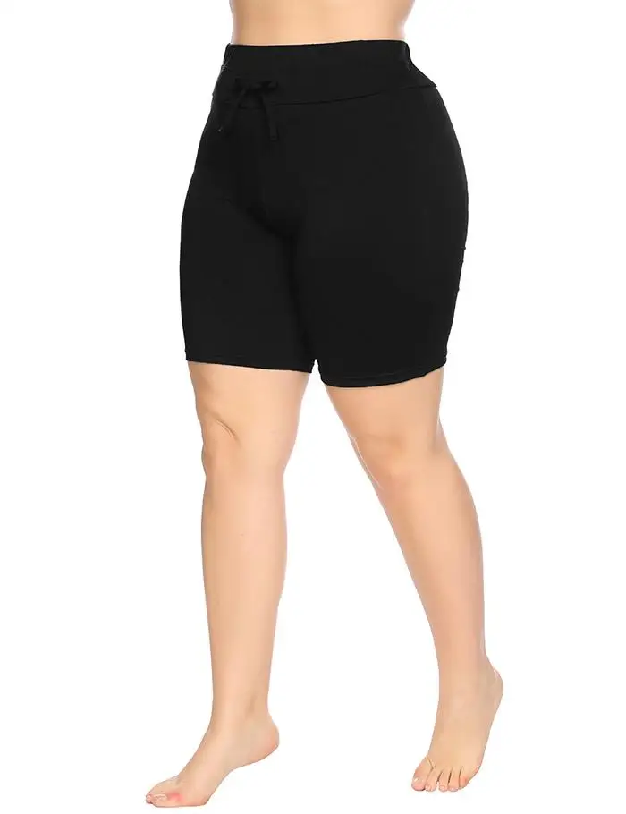 IN’VOLAND Plus Size Women Shorts XL-4XL Summer Beach Drawstring Waist Large Solid Pool Shorts Board Shorts Swimwear Big Size