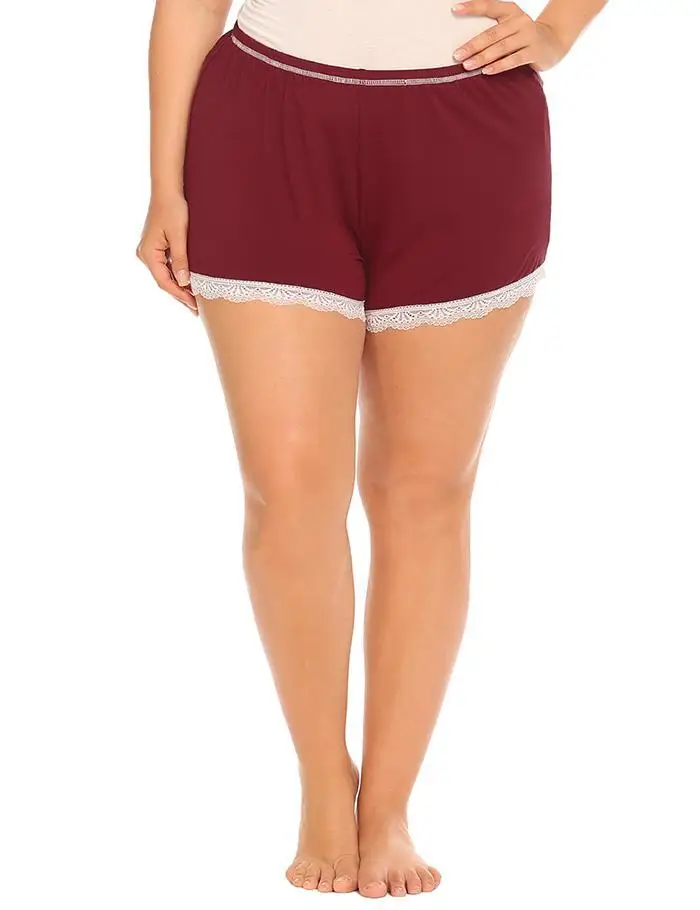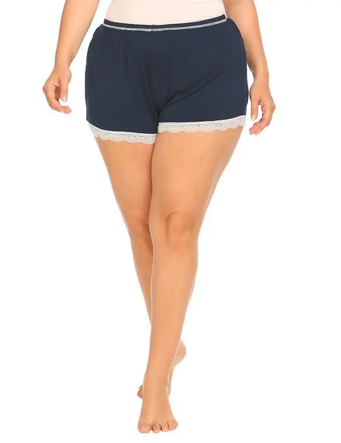 IN’VOLAND Plus Size Women Sleepwear Shorts XL-5XL Women’s Sleep Lace Trim Elastic Waist Soft Short Pants Lounge Oversized