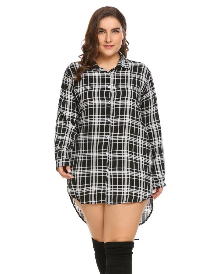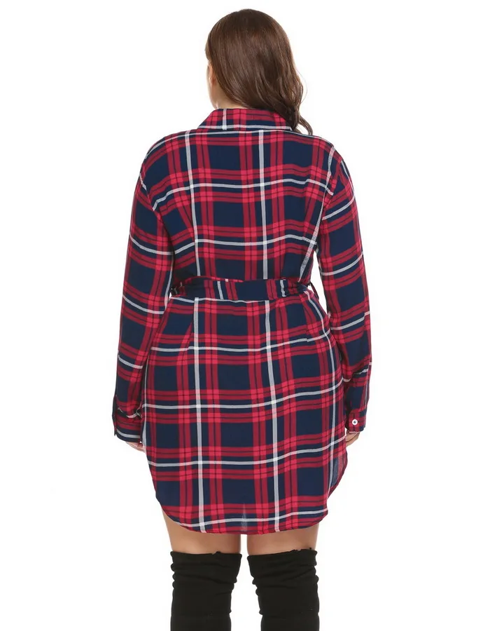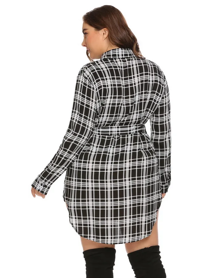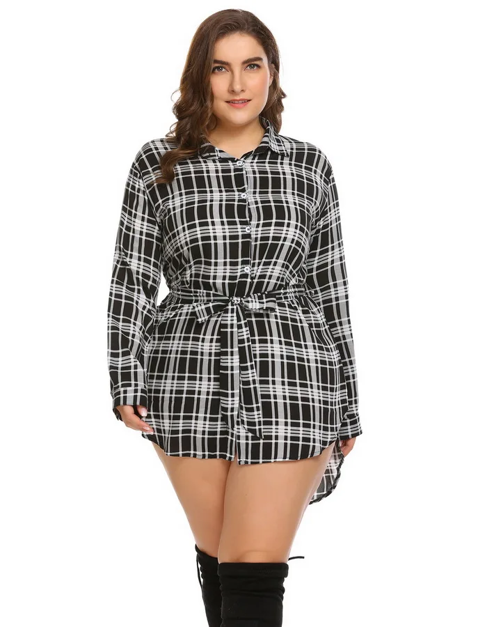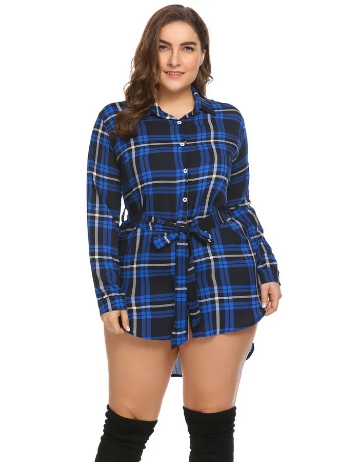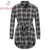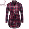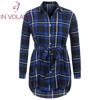 IN’VOLAND Women Blouse Blusas Tops Plus Size XL-5XL Spring Autumn Pullovers Plaid Button Down Loose Shirt Tops Belt Oversized