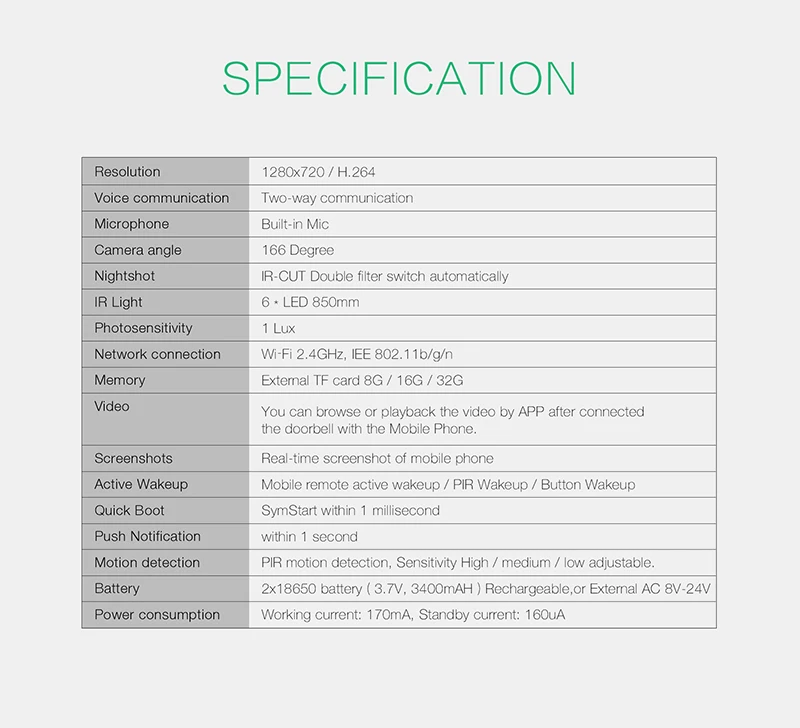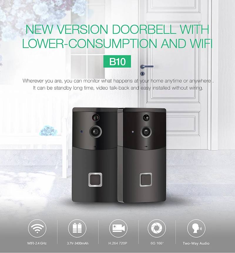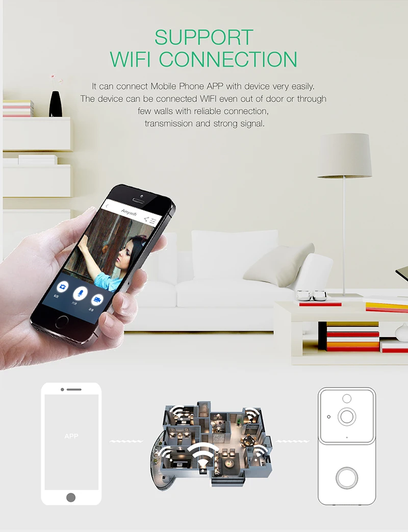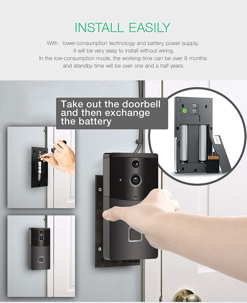 IP Video Intercom Wifi Doorbell Intercom IP Camera Battery Power Audio SD Card Slot Outdoor Security Door Camera