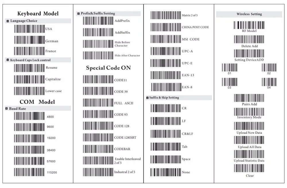 | Decode Capability | EAN-8,EAN-13,UPC-A,UPC-E,Code 39,Code 93,Code 128,EAN128,Codaber, Industoal 2 of 5,Interleave 2 of 5,Matrix 2 of 5,MSI,etc. |