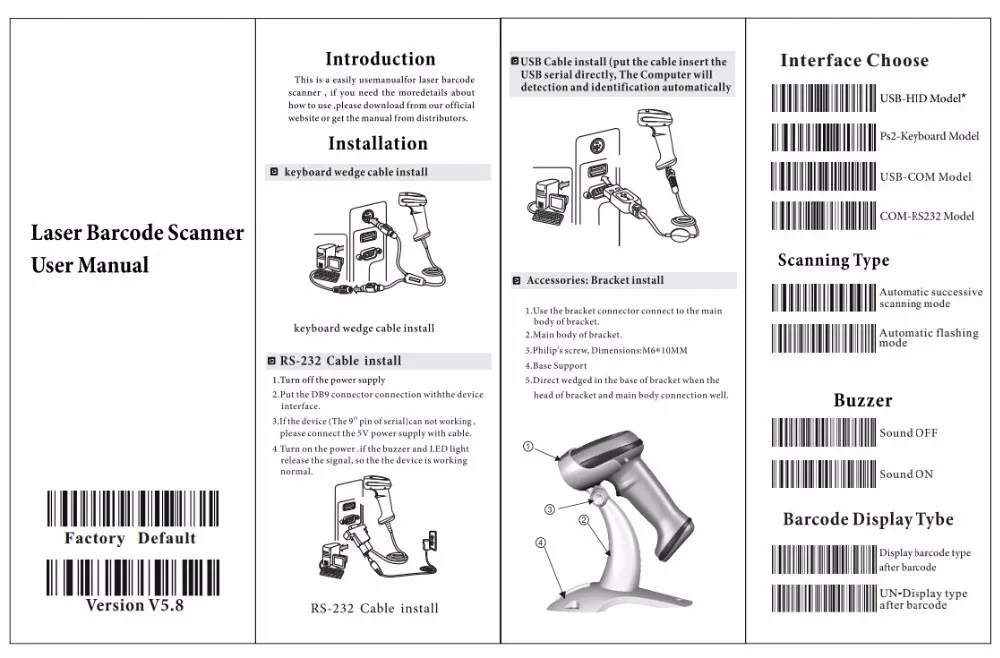 This Barcode Scanner standard interface is USB, if you need other interface, please contact us before you make the order. Thanks!