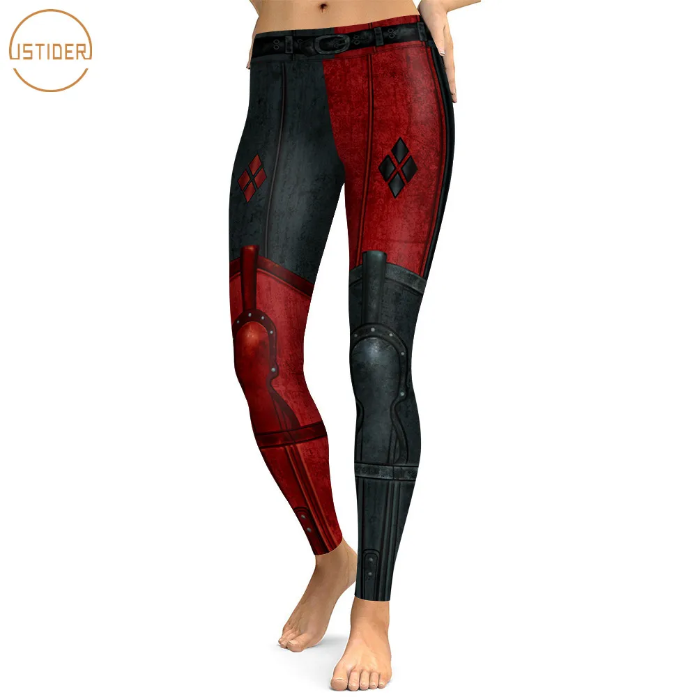 ISTider 3D Harley Quinn Printed Punk Red/Black Leggings Women Push Up Fitness Leggins High Waist Sporting Pants Workout Leggin