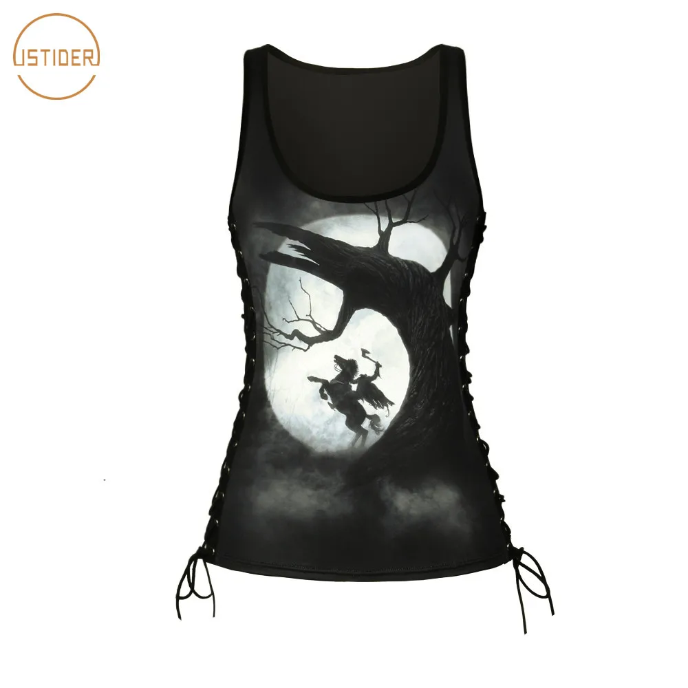 ISTider Gothic Halloween Clothes 3D Print Headless Horseman Bandage Tops Sexy Women Summer Tank Top Camis Punk Skeleton Blusas