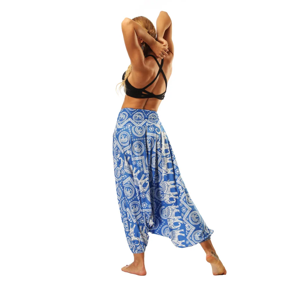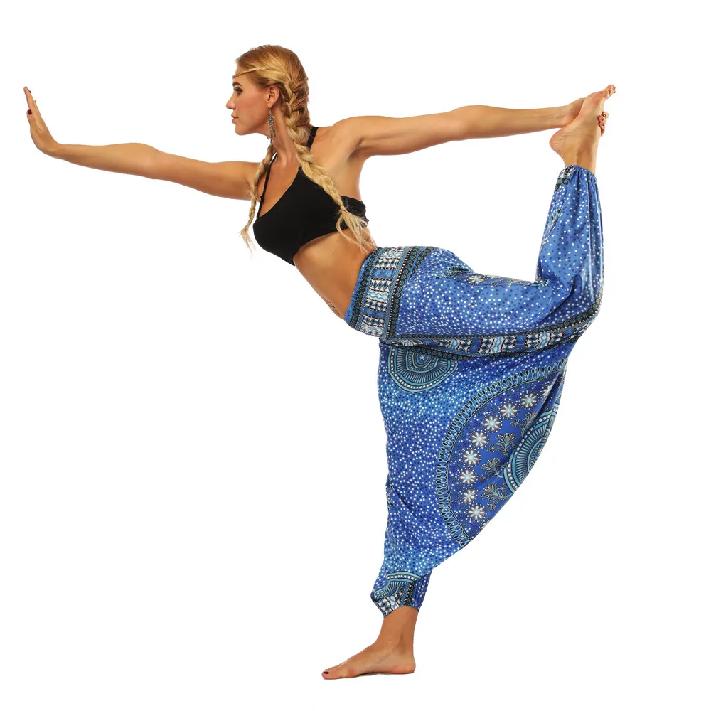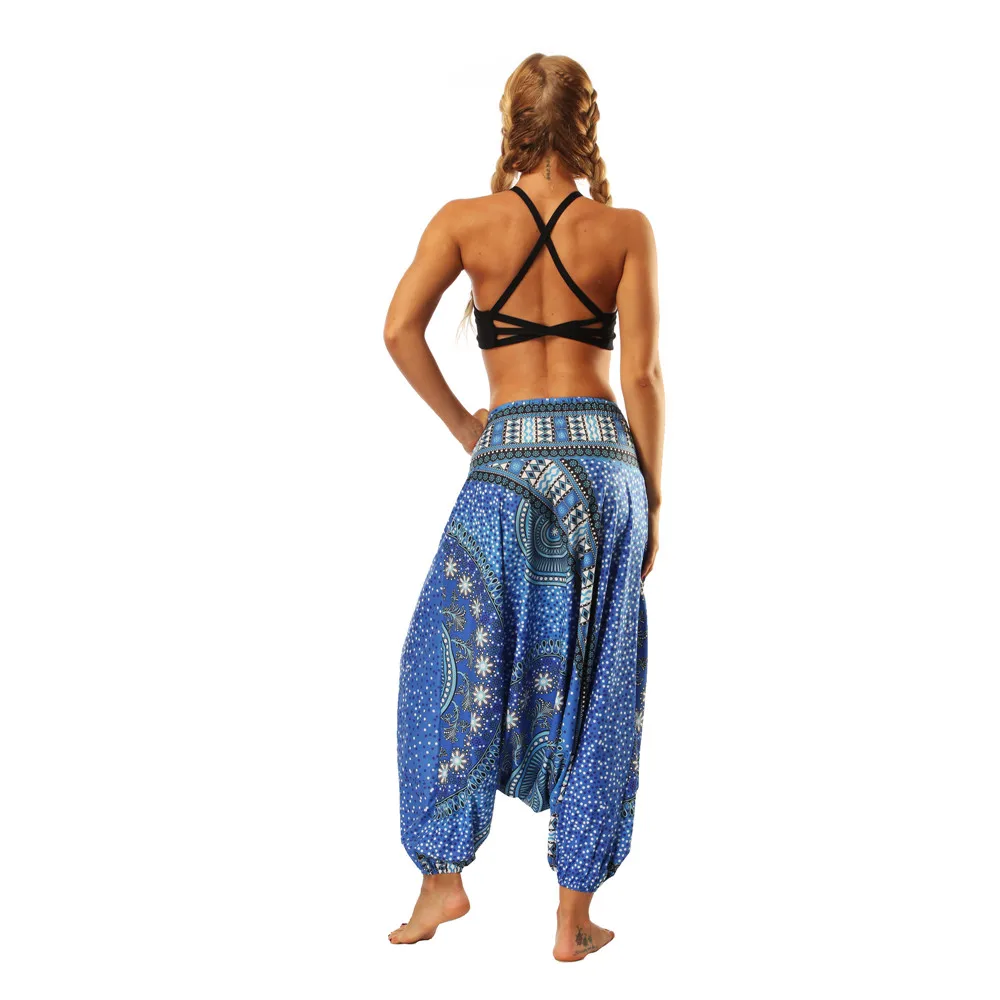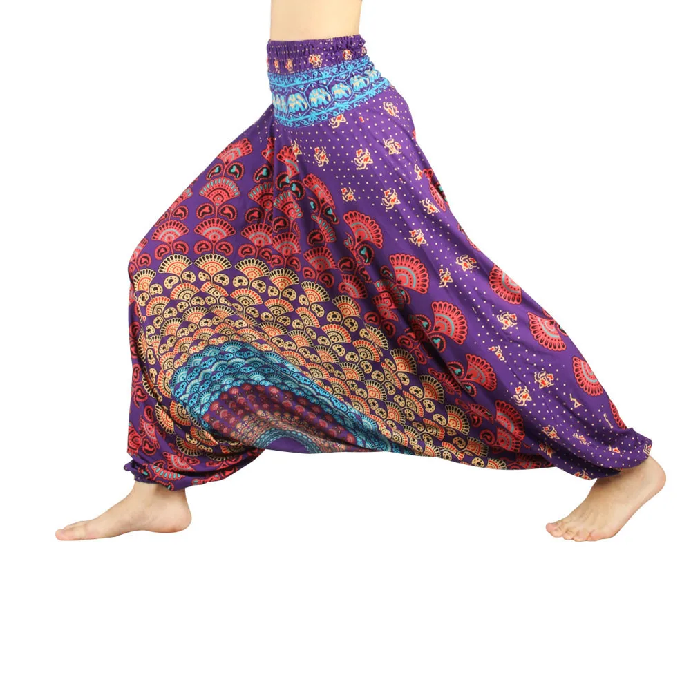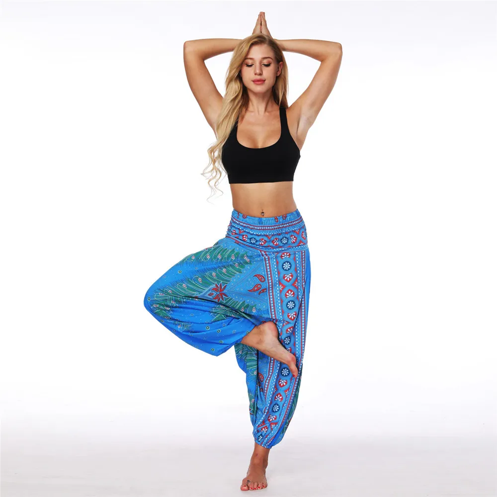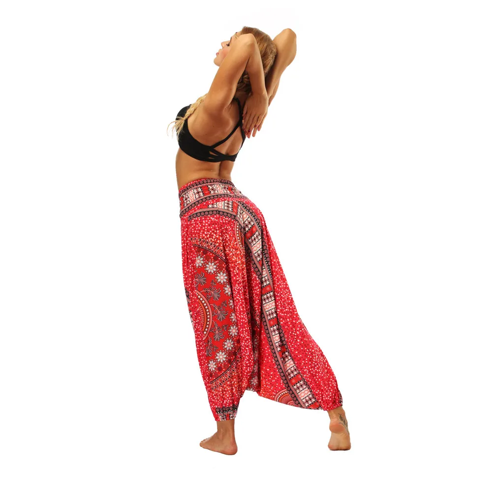 ISTider Wide Leg Pants for Women Bohemia Multicolor Print Long Yuga Pants Indian Loose Comfy Harem Trousers High Waist Bottom
