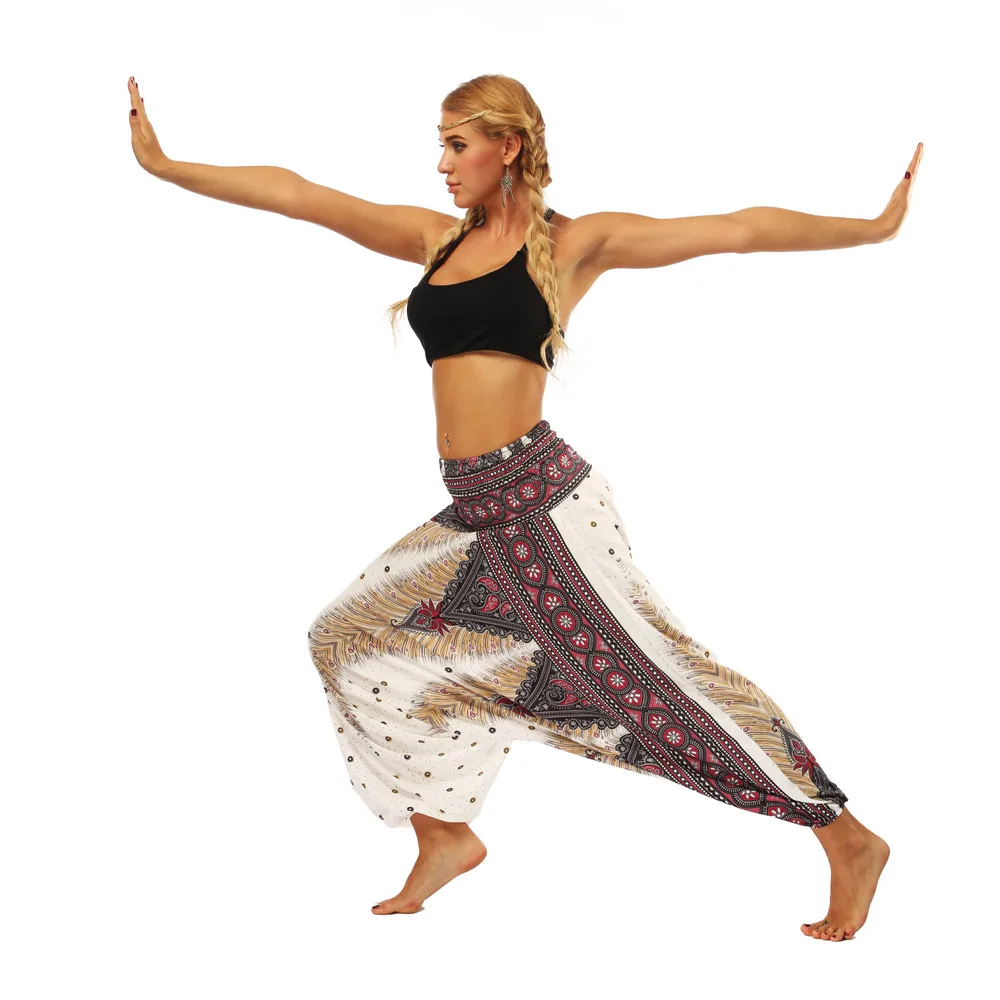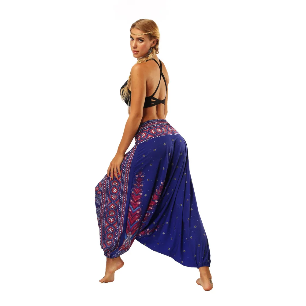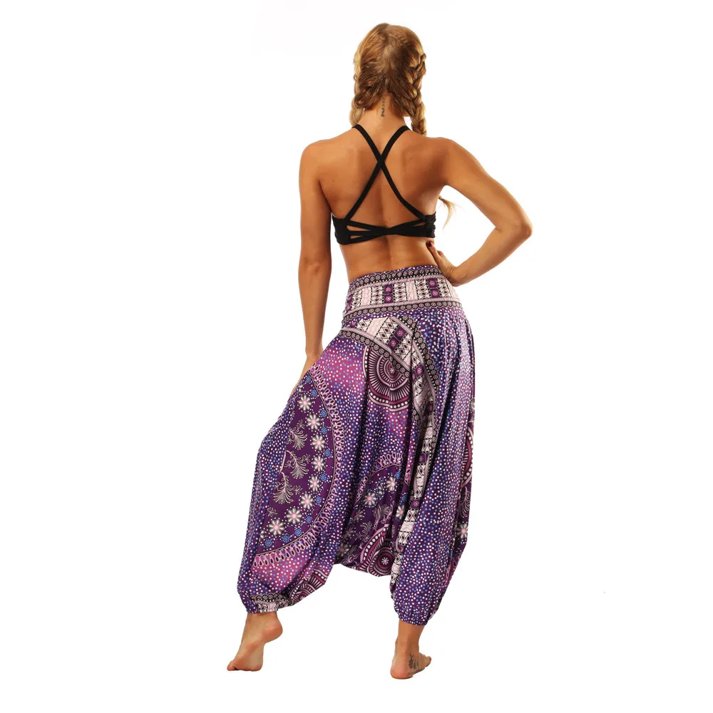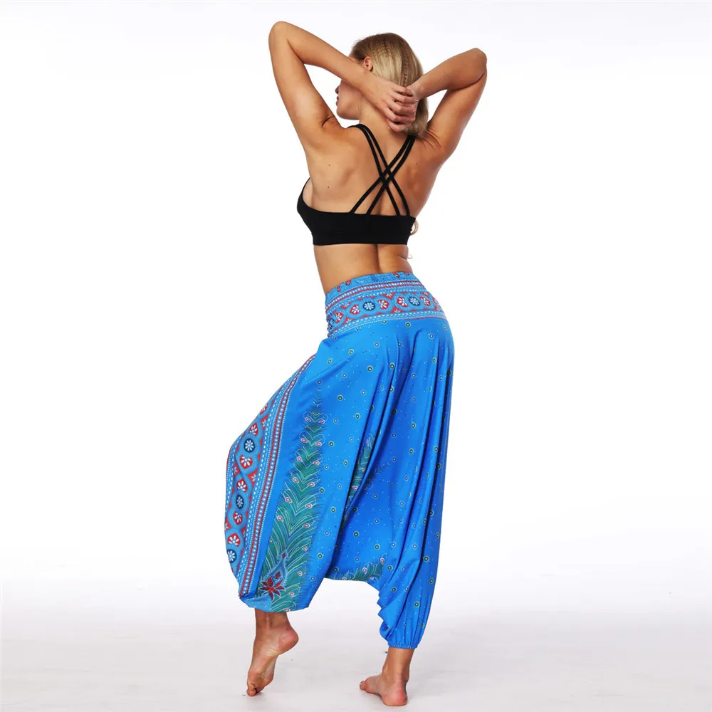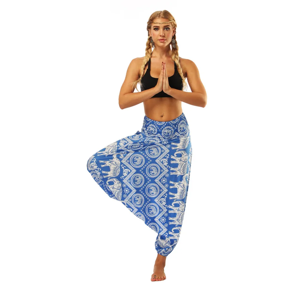 ISTider Wide Leg Pants for Women Bohemia Multicolor Print Long Yuga Pants Indian Loose Comfy Harem Trousers High Waist Bottom