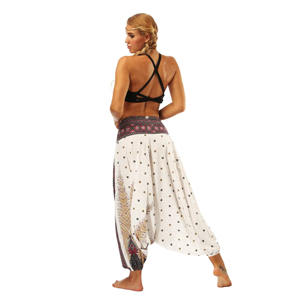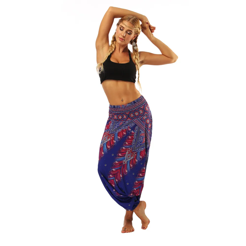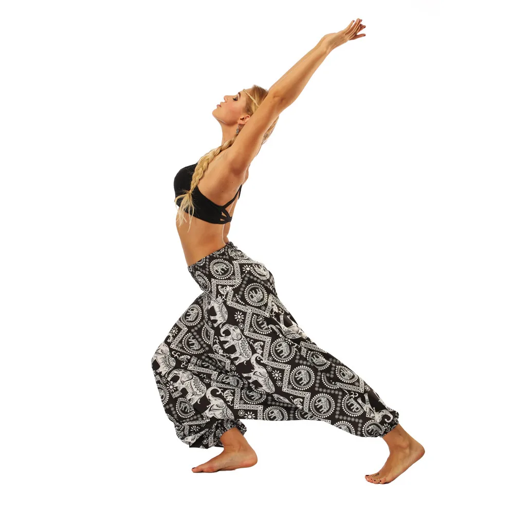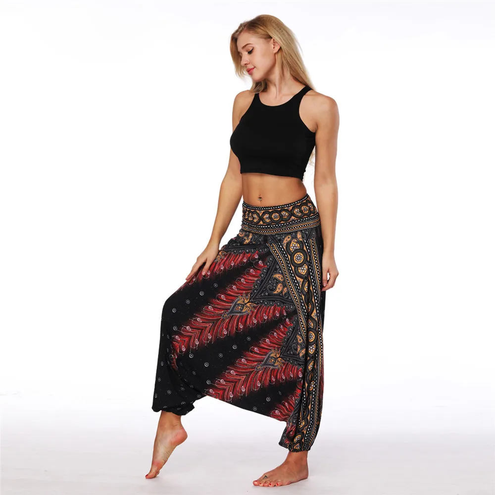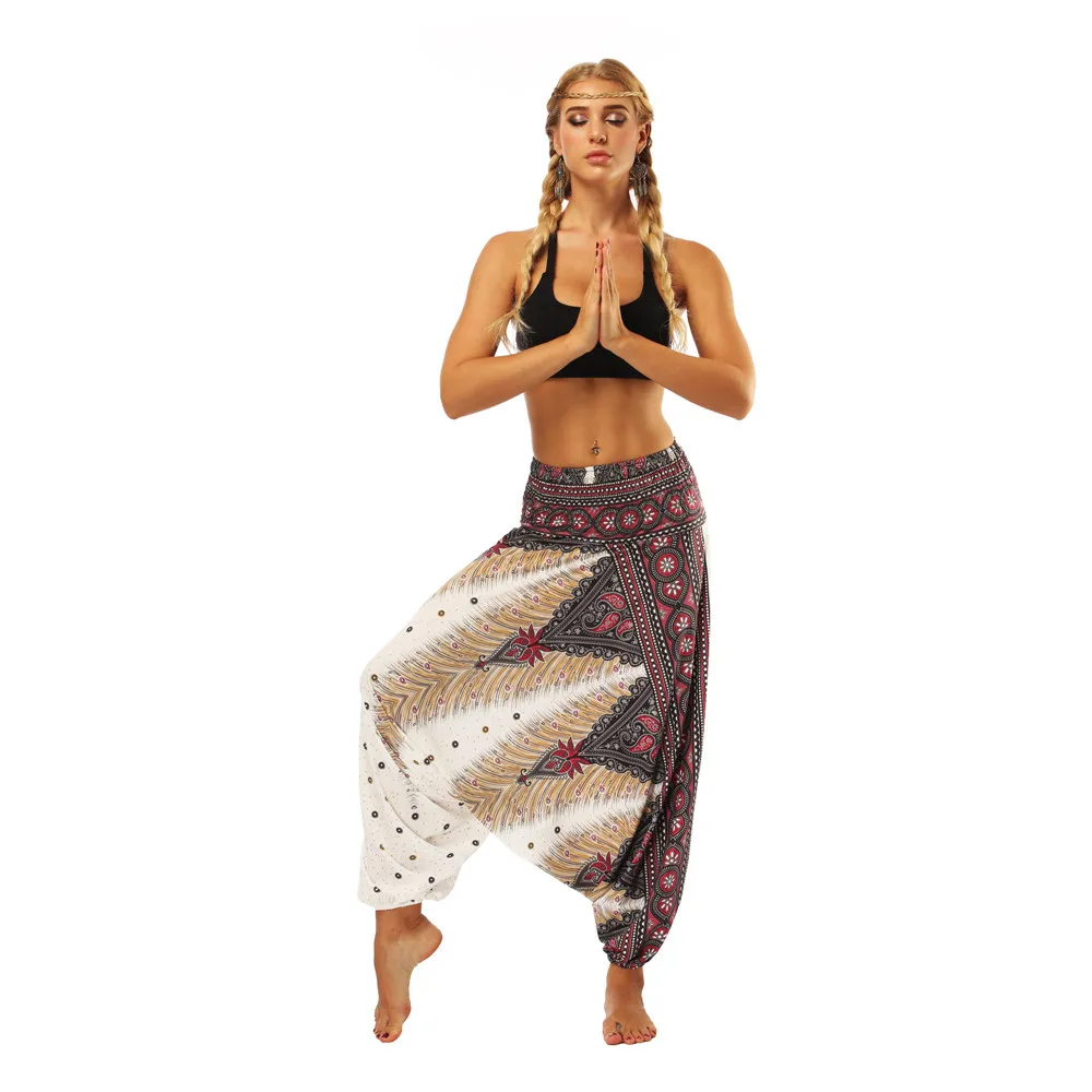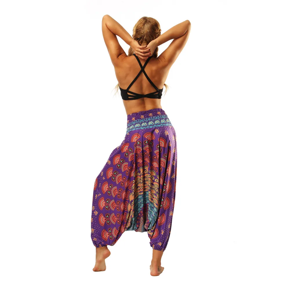 ISTider Wide Leg Pants for Women Bohemia Multicolor Print Long Yuga Pants Indian Loose Comfy Harem Trousers High Waist Bottom
